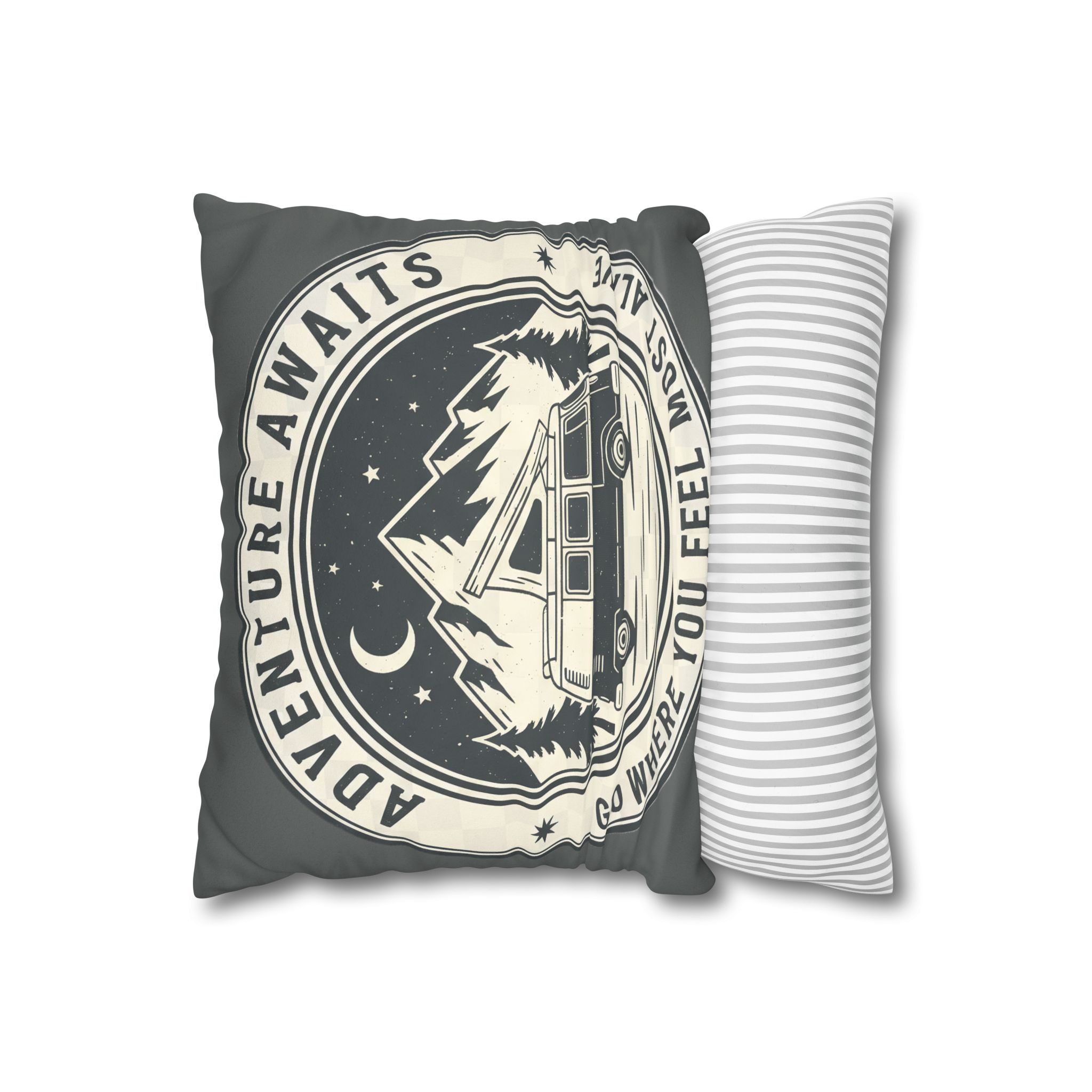 Pillowcase — “Adventure Awaits-Go Where You Feel Most Alive” Faux Suede Travel Throw Pillow Cover