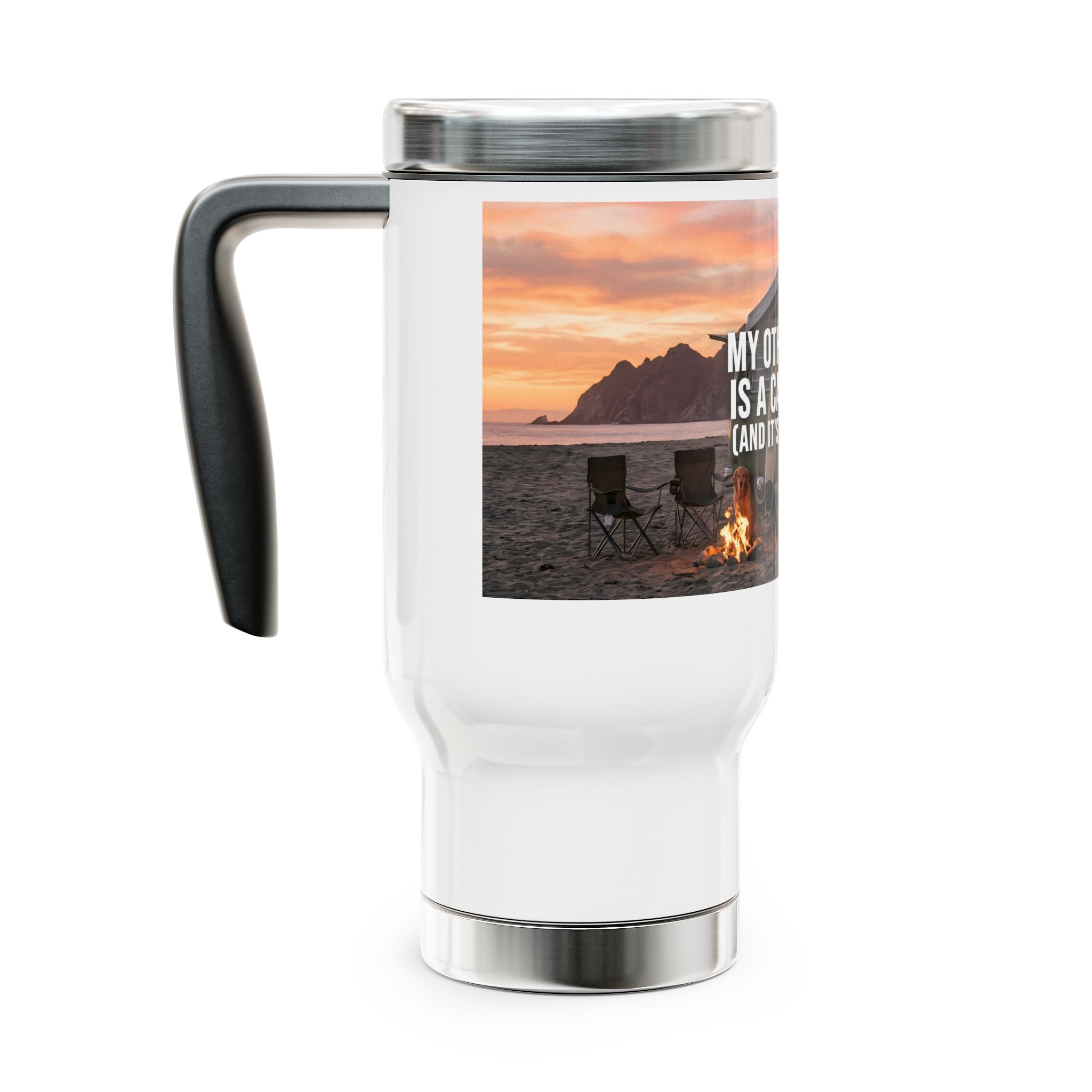Stainless Steel Travel Mug with Handle, 14oz — “My Other House Is a Campervan (And It’s Way Cooler)”