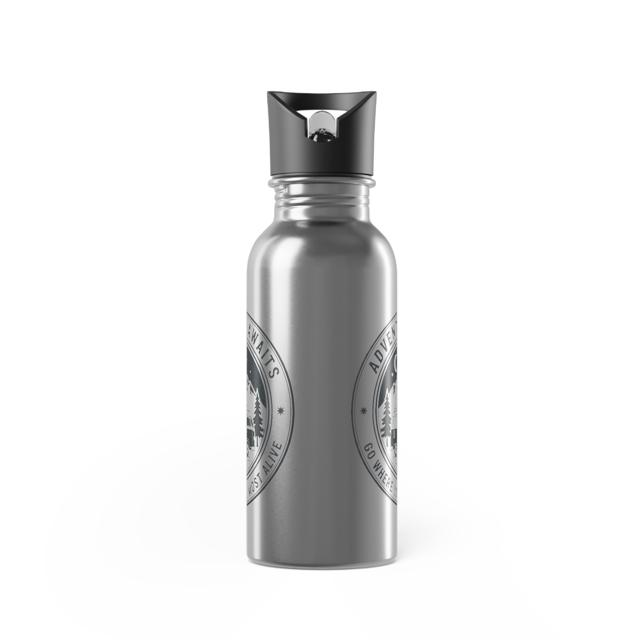 Stainless Steel Water Bottle with Straw – ‘Adventure Awaits-Go Where You Feel Most Alive’ Outdoor Logo 20oz