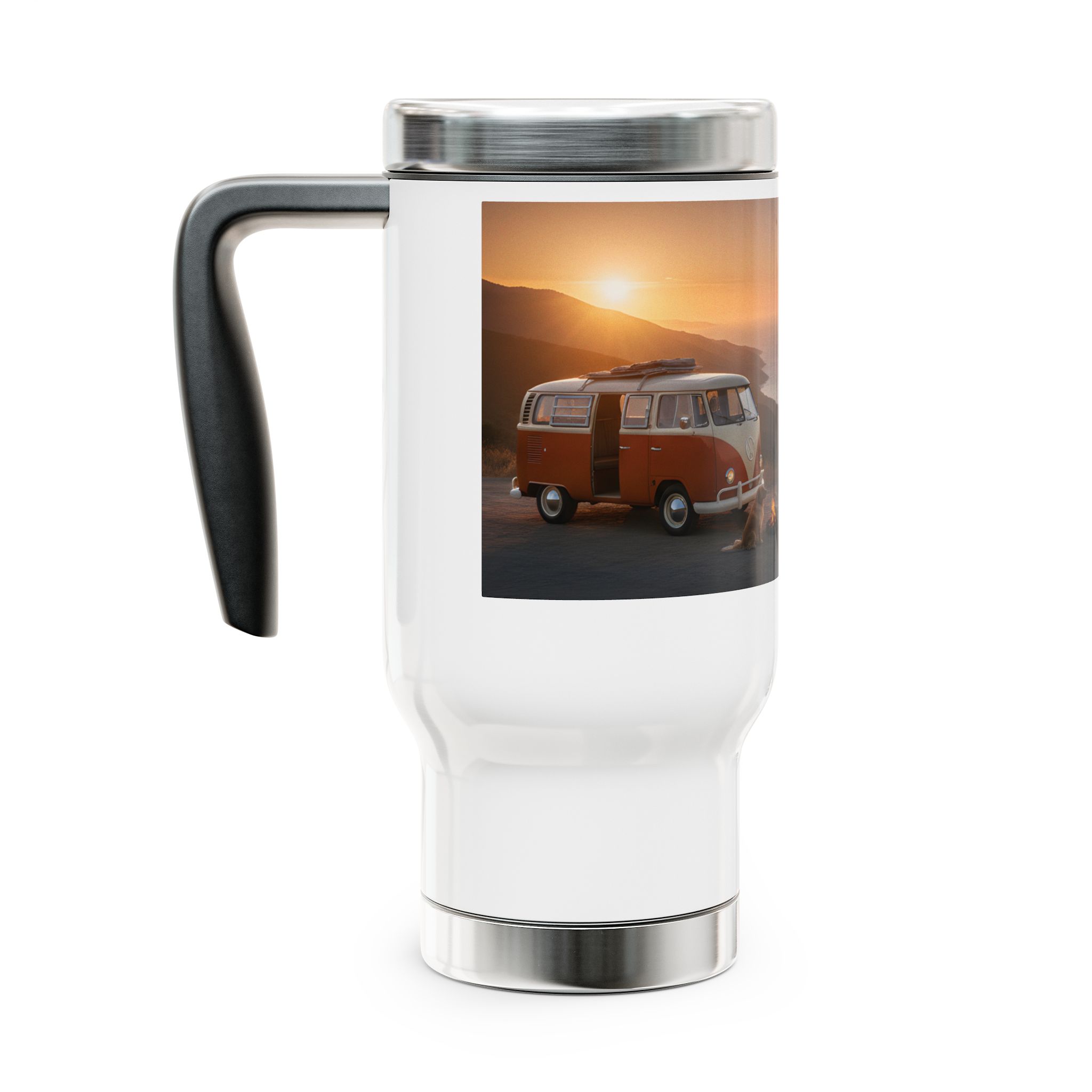Stainless Steel Travel Mug with Handle, 14oz — “The Road is Life”