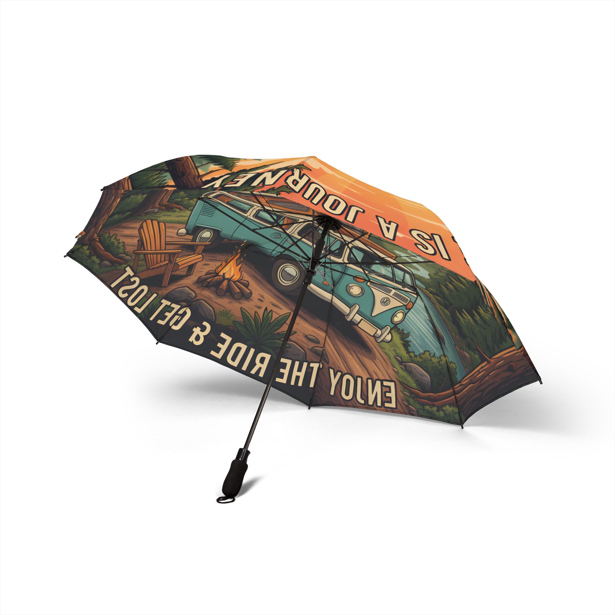 Semi-Automatic Foldable Umbrella — “Life Is A Journey-Enkoy The Ride” Vintage Adventure Print