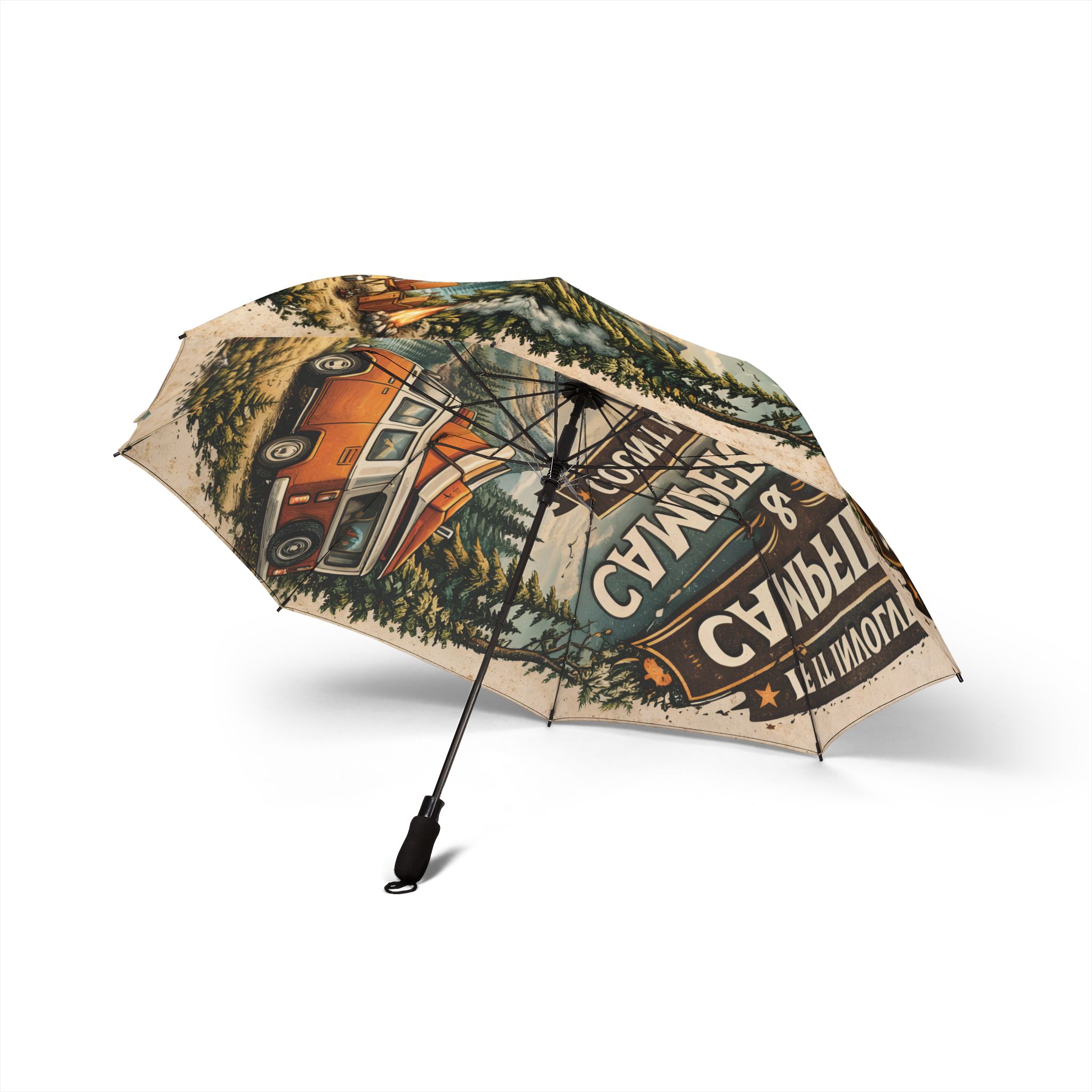 Semi-Automatic Foldable Umbrella — “Home Is Where You Park It” Vintage Adventure Print