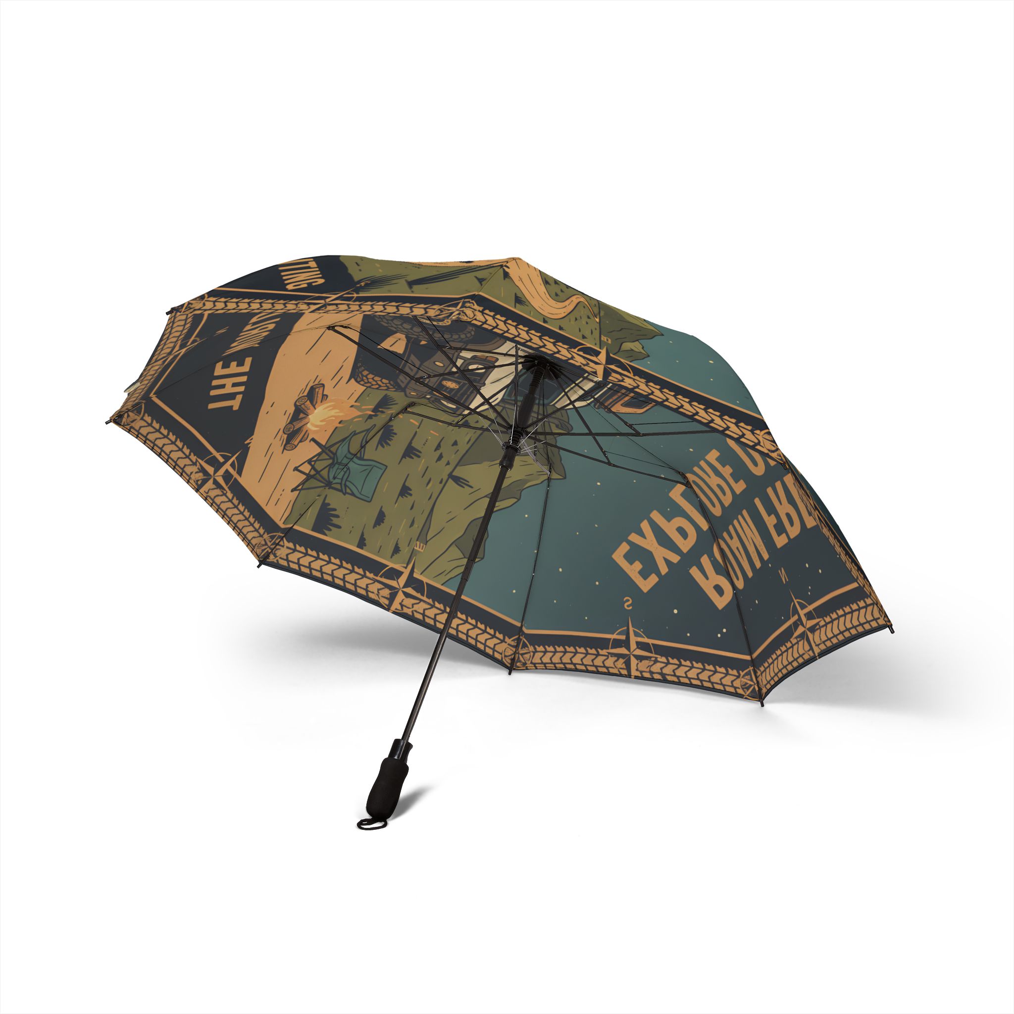Semi-Automatic Foldable Umbrella — “Roam Free Explore Often-The World Is Waiting” Vintage Adventure Print