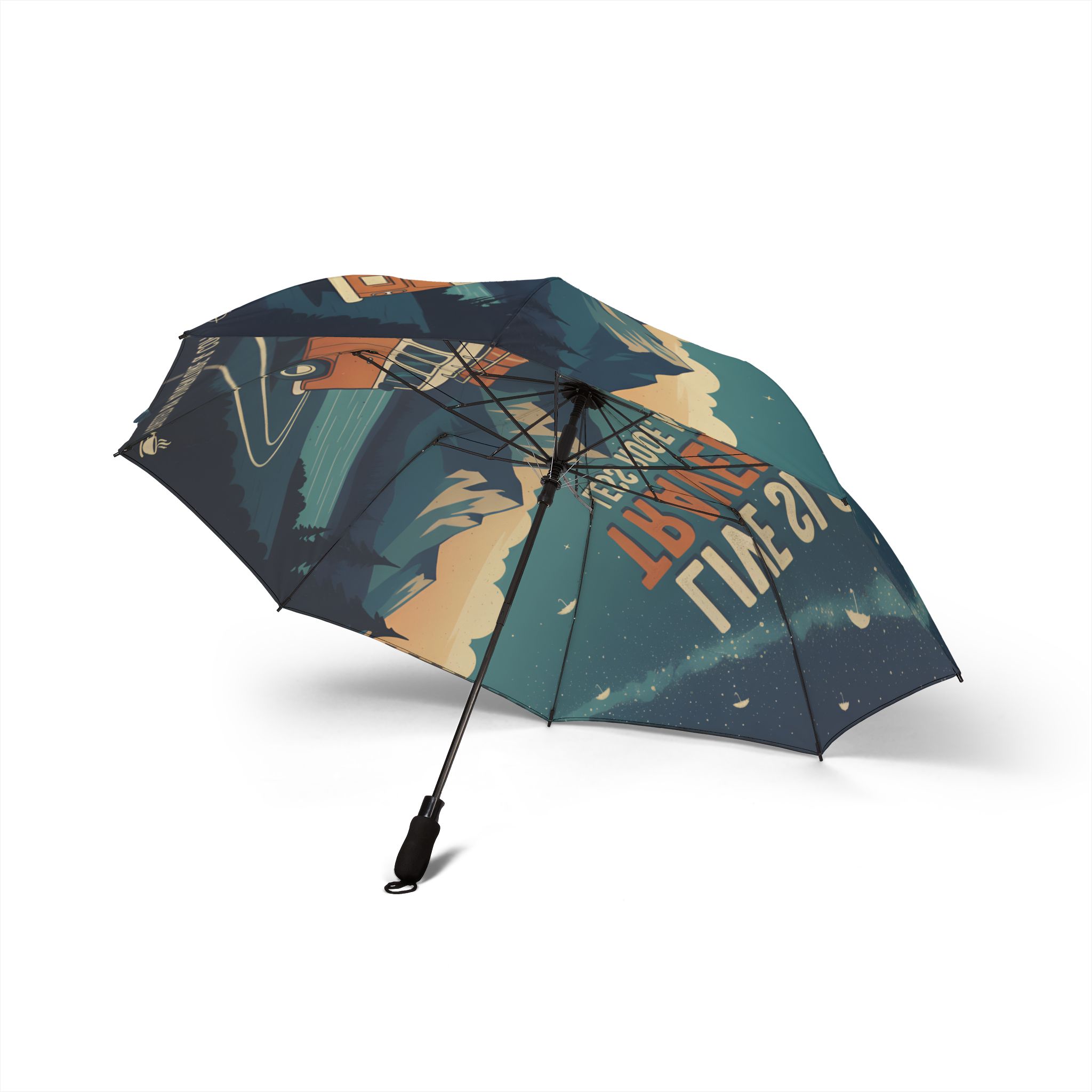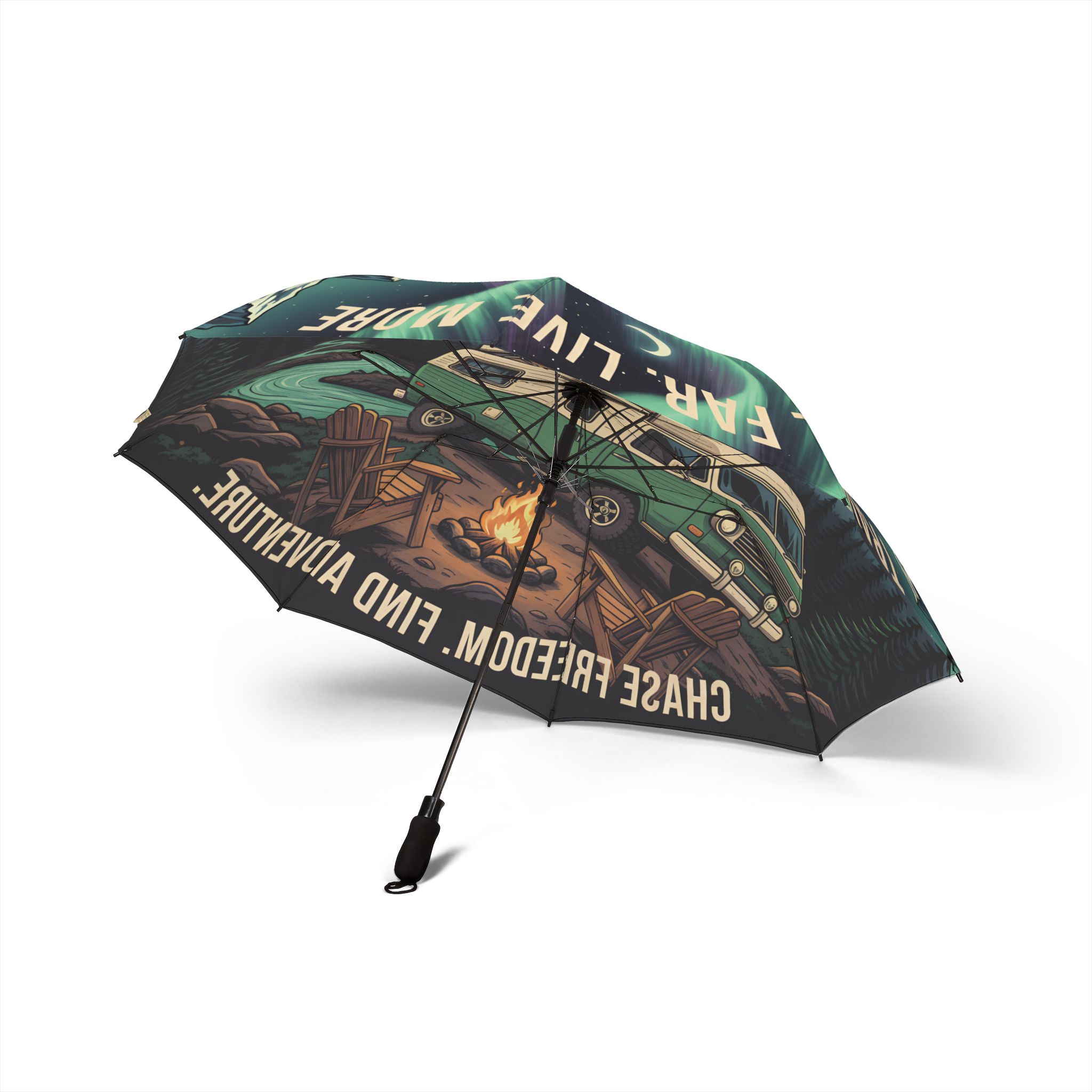 Semi-Automatic Foldable Umbrella — “Live Slow Travel Far-Less Roof More Sky” Vintage Adventure Print