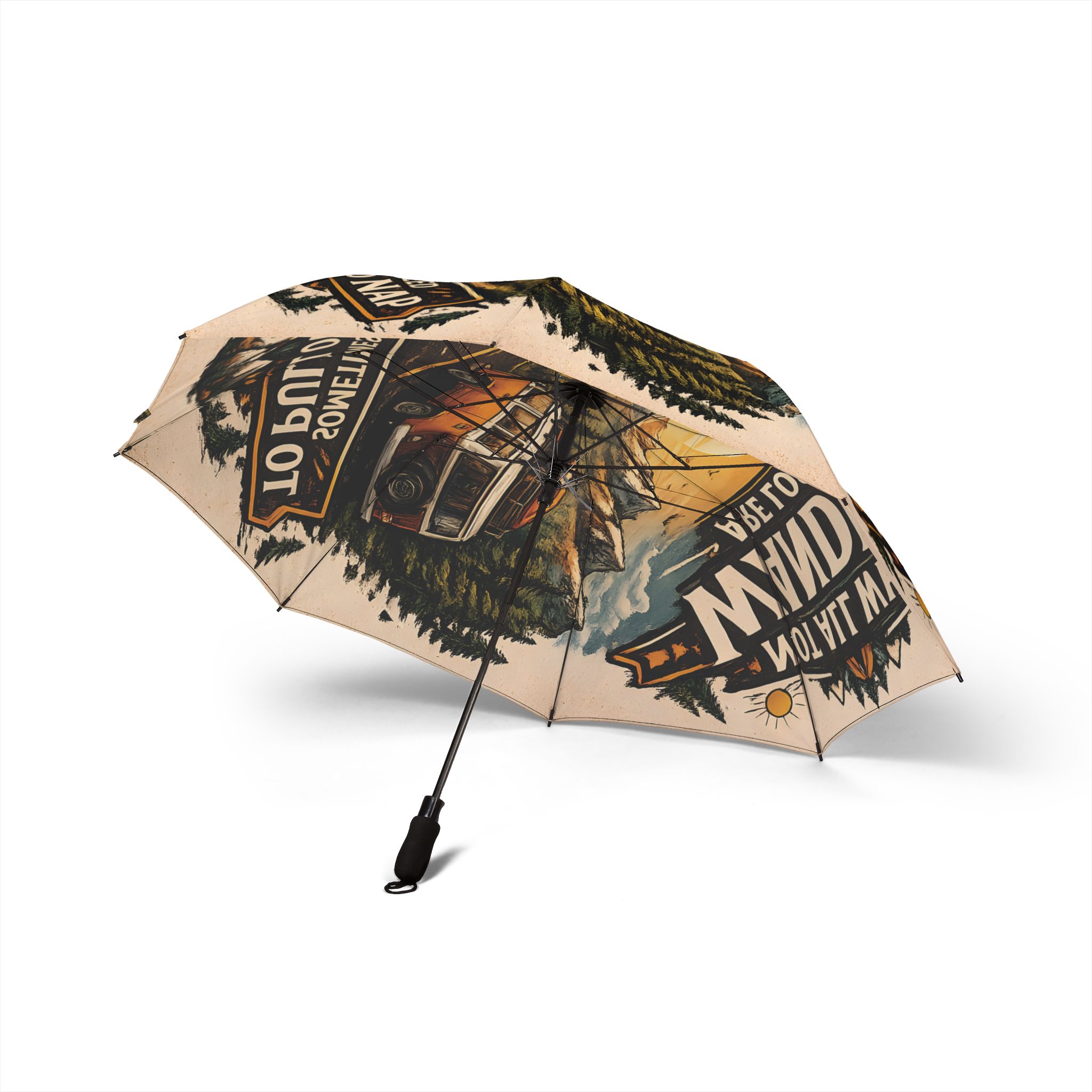 Semi-Automatic Foldable Umbrella — “Escape The Ordinary Find Your Road” Vintage Adventure Print