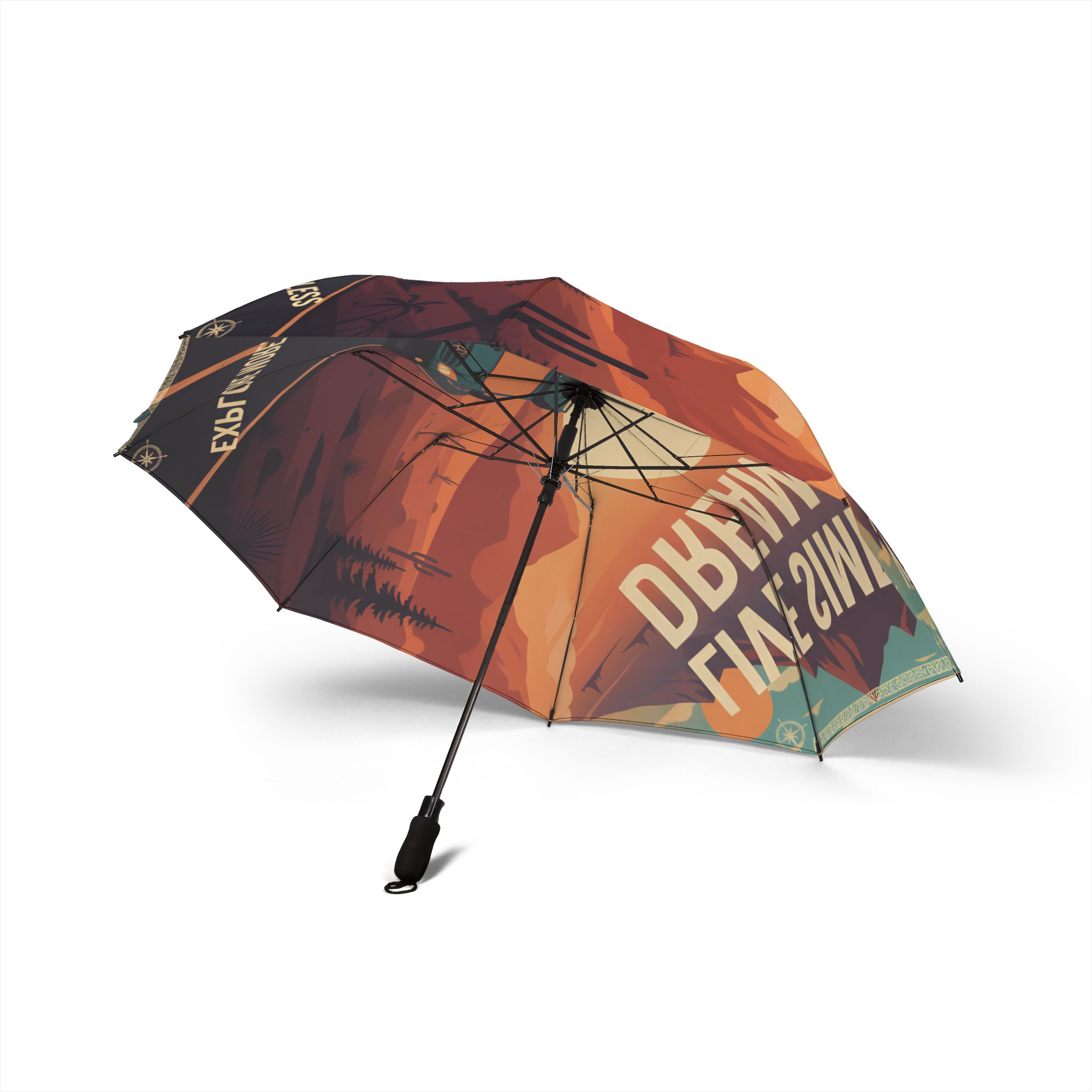 Semi-Automatic Foldable Umbrella — “Chase The Sunset-Find Your Adventure” Vintage Adventure Print