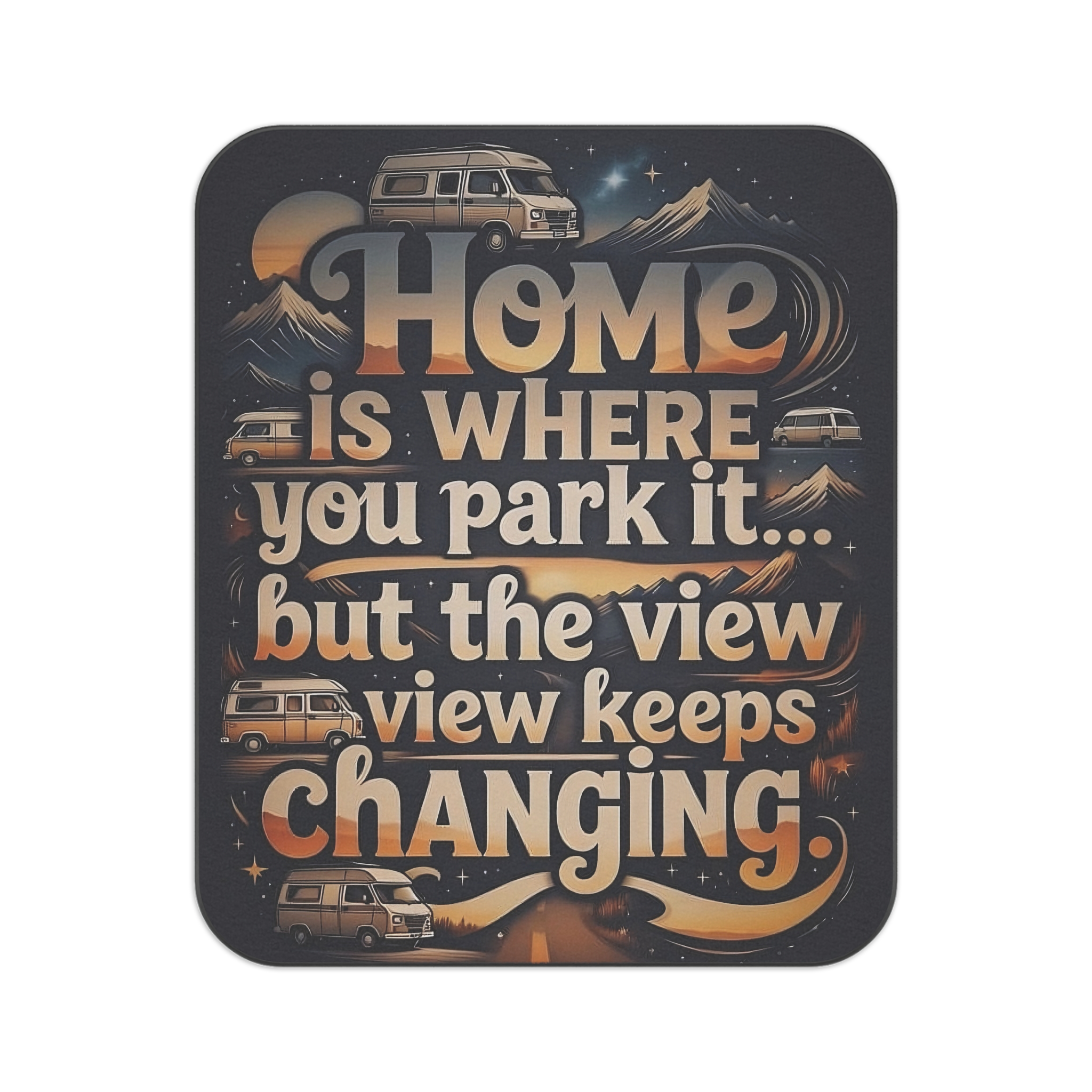 Picnic Blanket — “Home Is Where You Park It -But The View keep Changing” Vintage Camper Outdoor Blanket