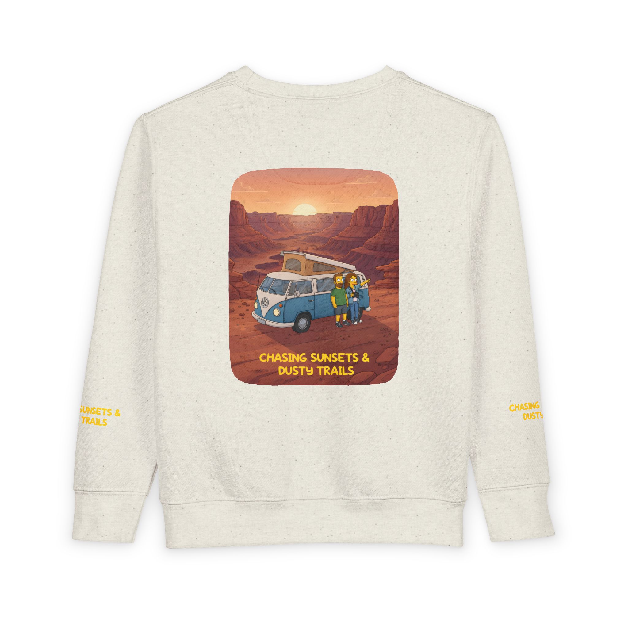 Toddler Sweatshirt – “Chasing Sunsets And Dusty Trails” (Design Sitcom-Line)