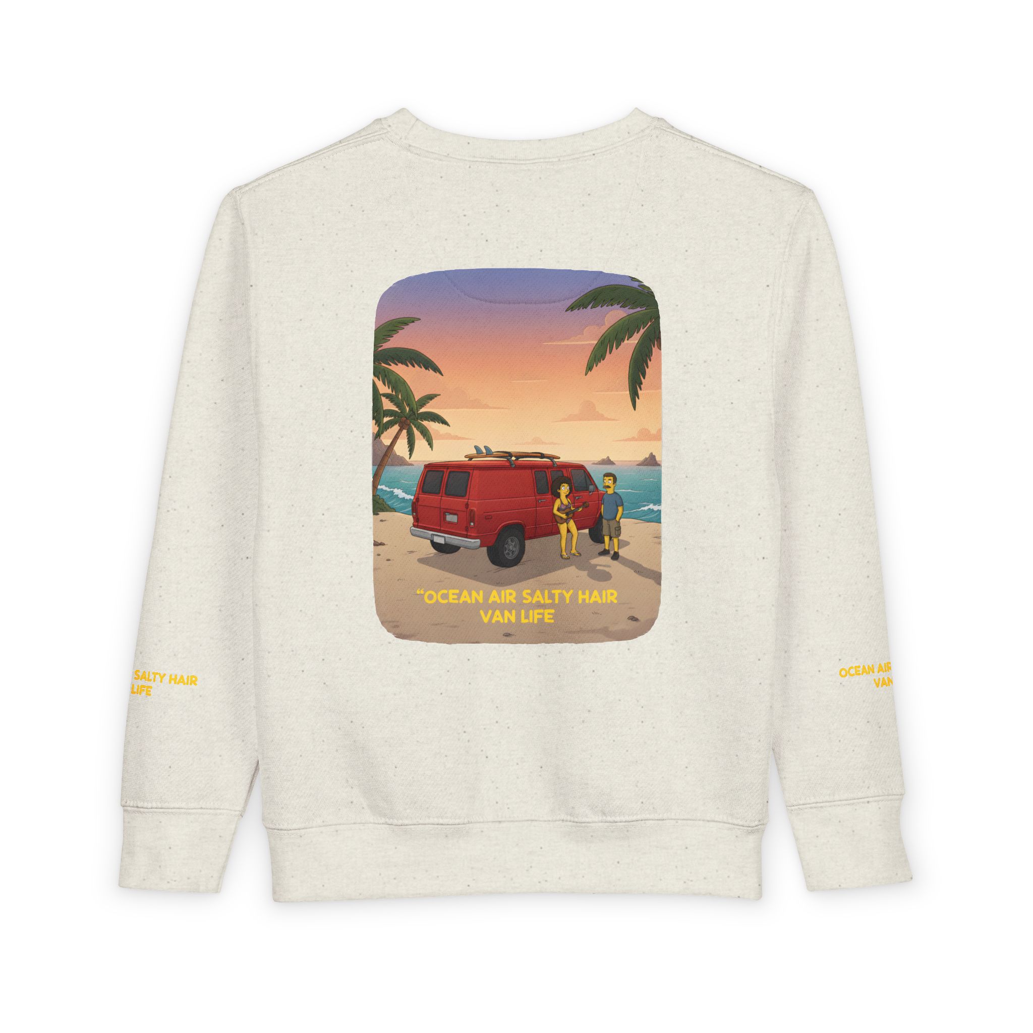 Toddler Sweatshirt – “Ocean Air Salty Hair Van Life” (Design Sitcom-Line)