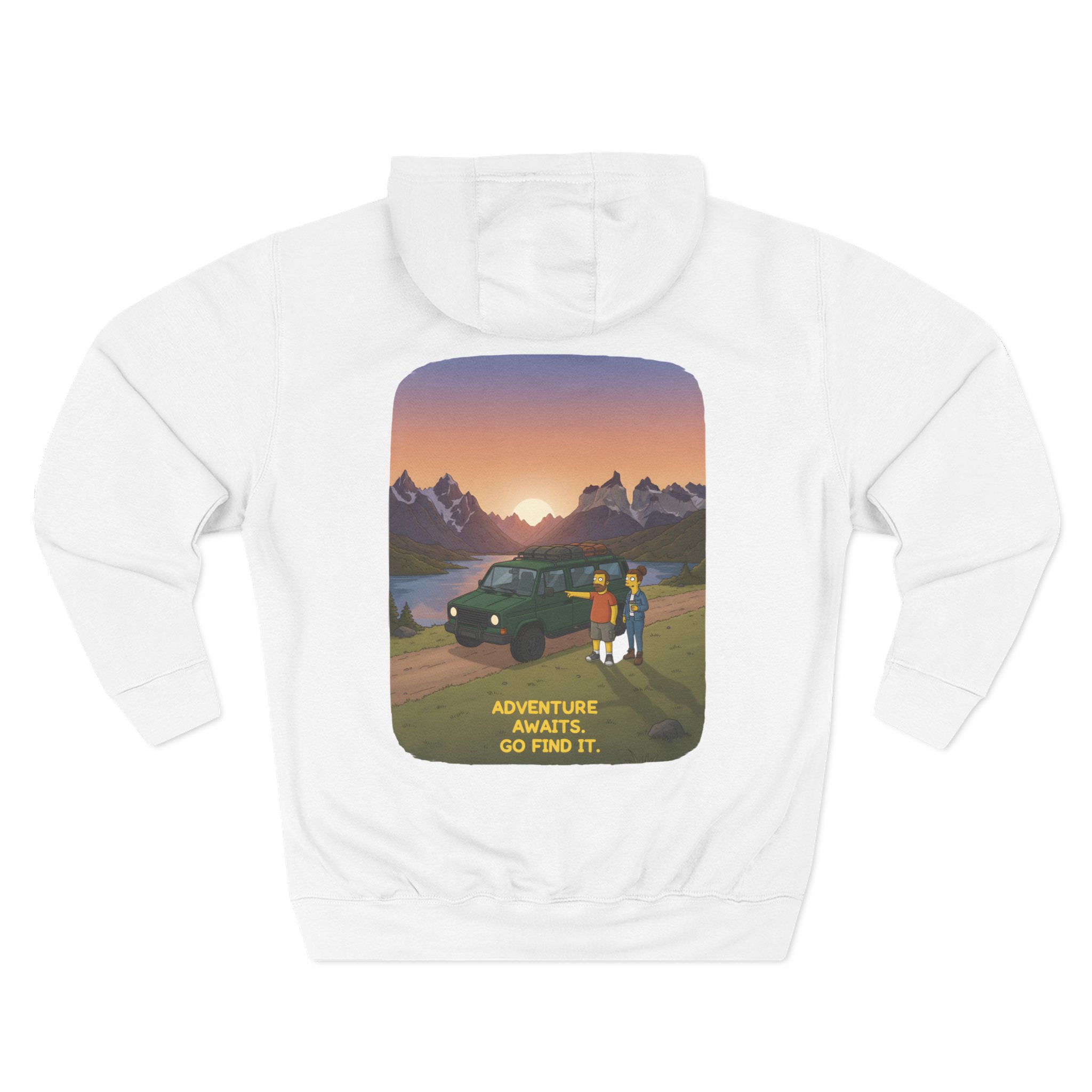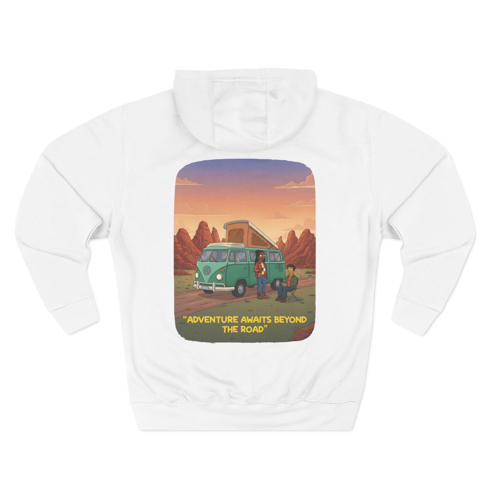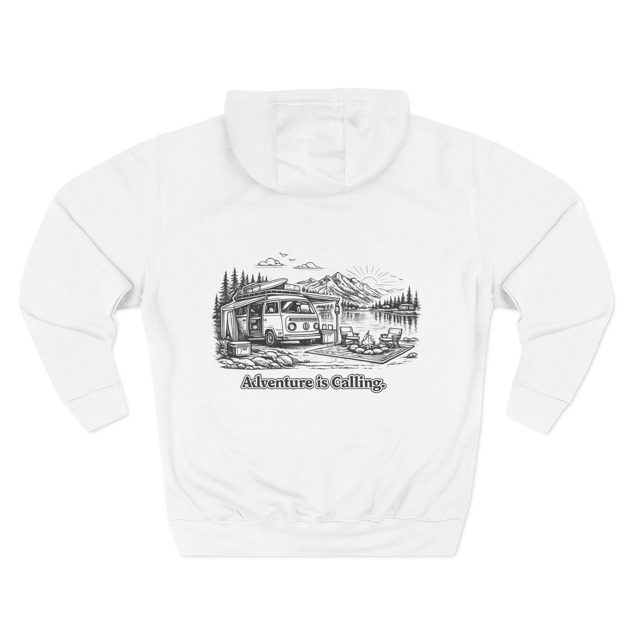 Three-Panel Fleece Hoodie – “Adventure Awaits,Pack Up The Van” Design Minimal-Line