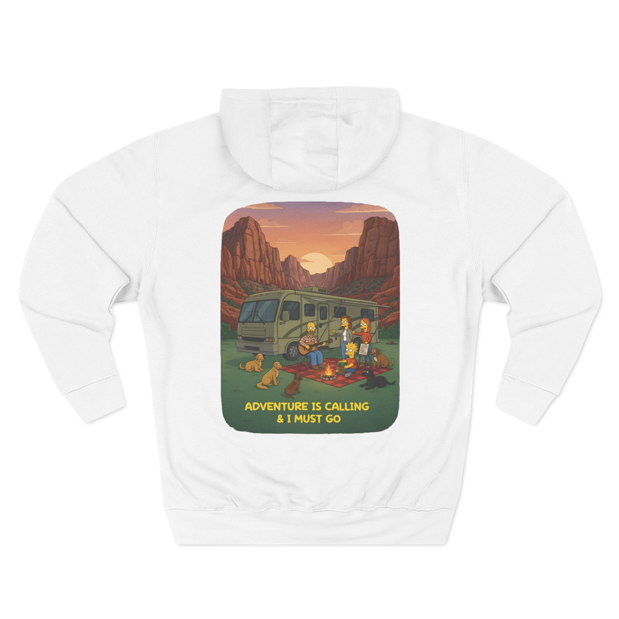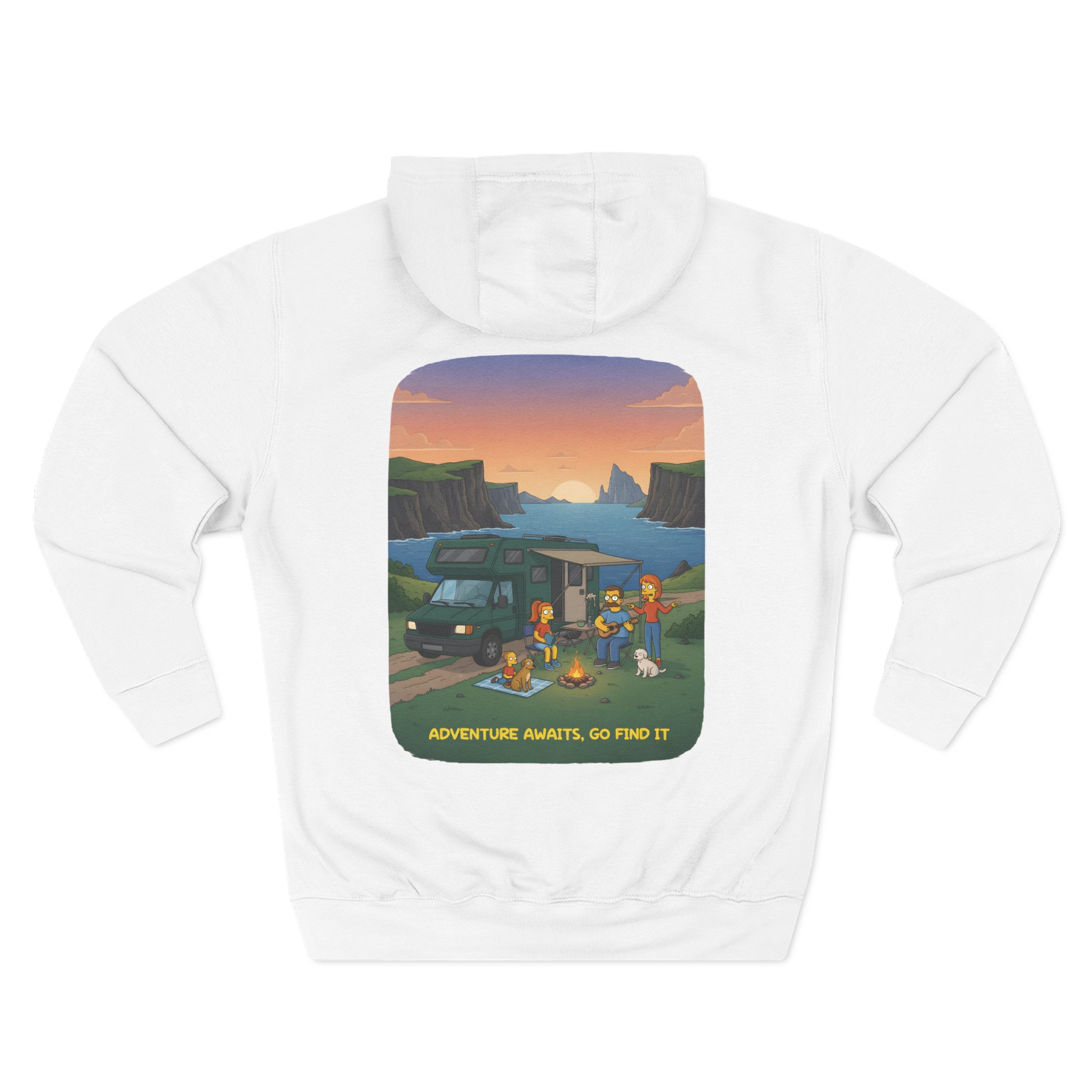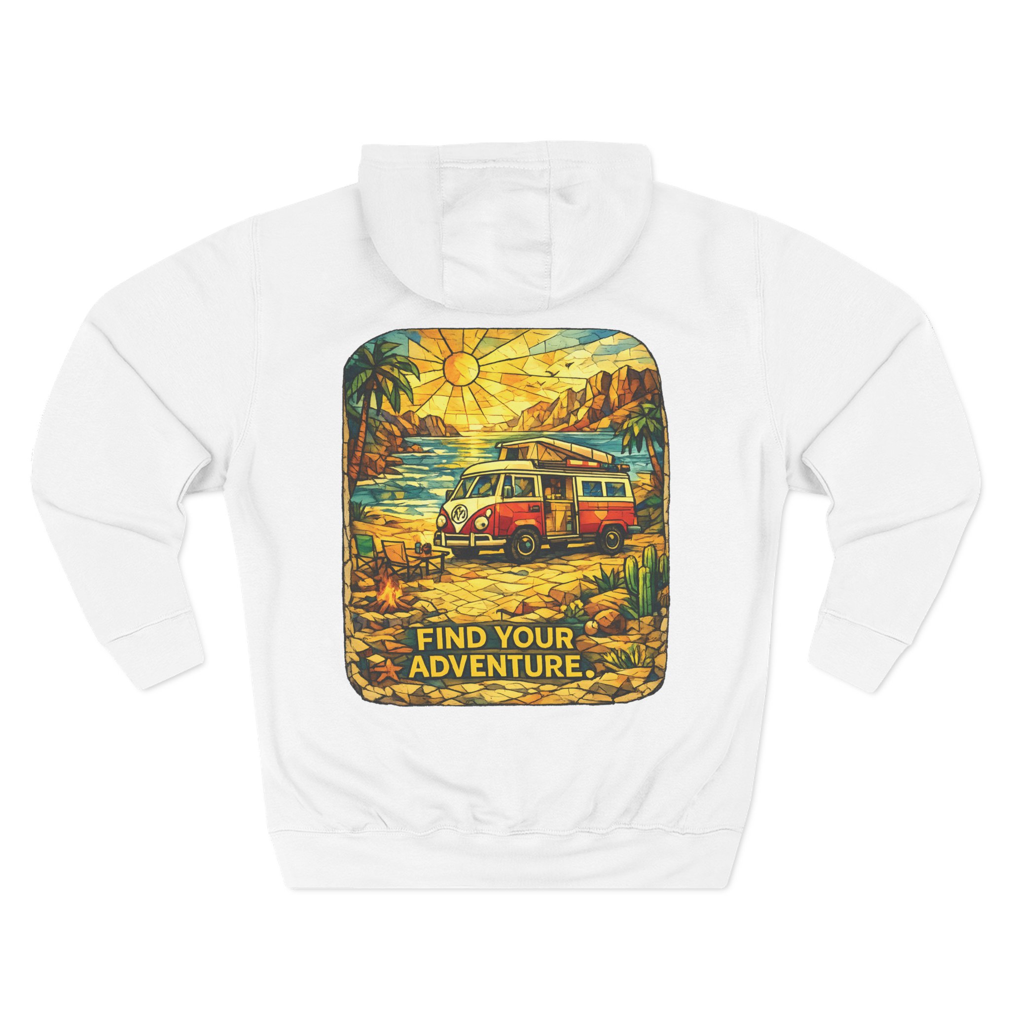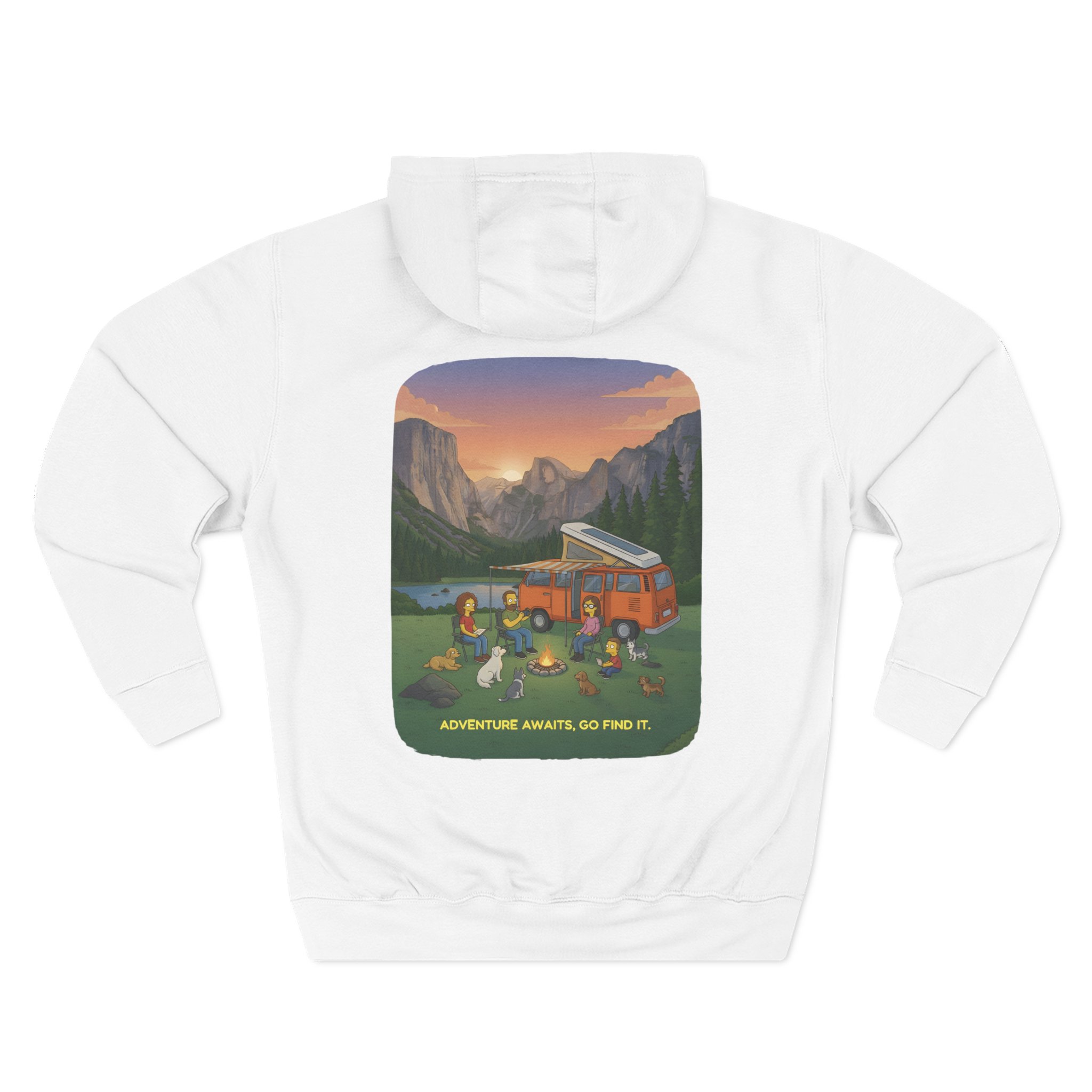 Three-Panel Fleece Hoodie – “Adventure Awaits,Pack Up The Van” Design Minimal-Line