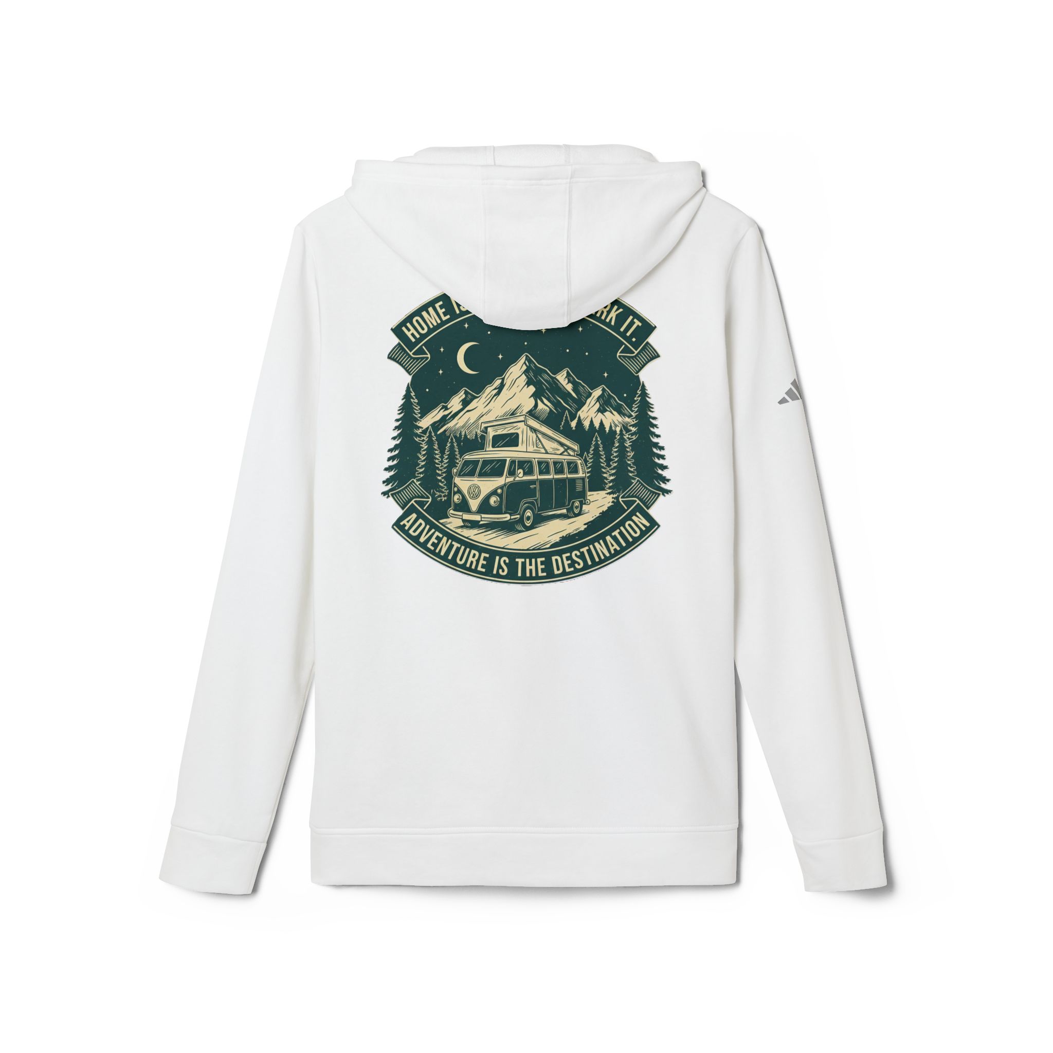Hoodie(Adidas) — “Home Is Where You Park It-Adventure is the destination” Outdoor Travel Pullover (Front + Back Printed)