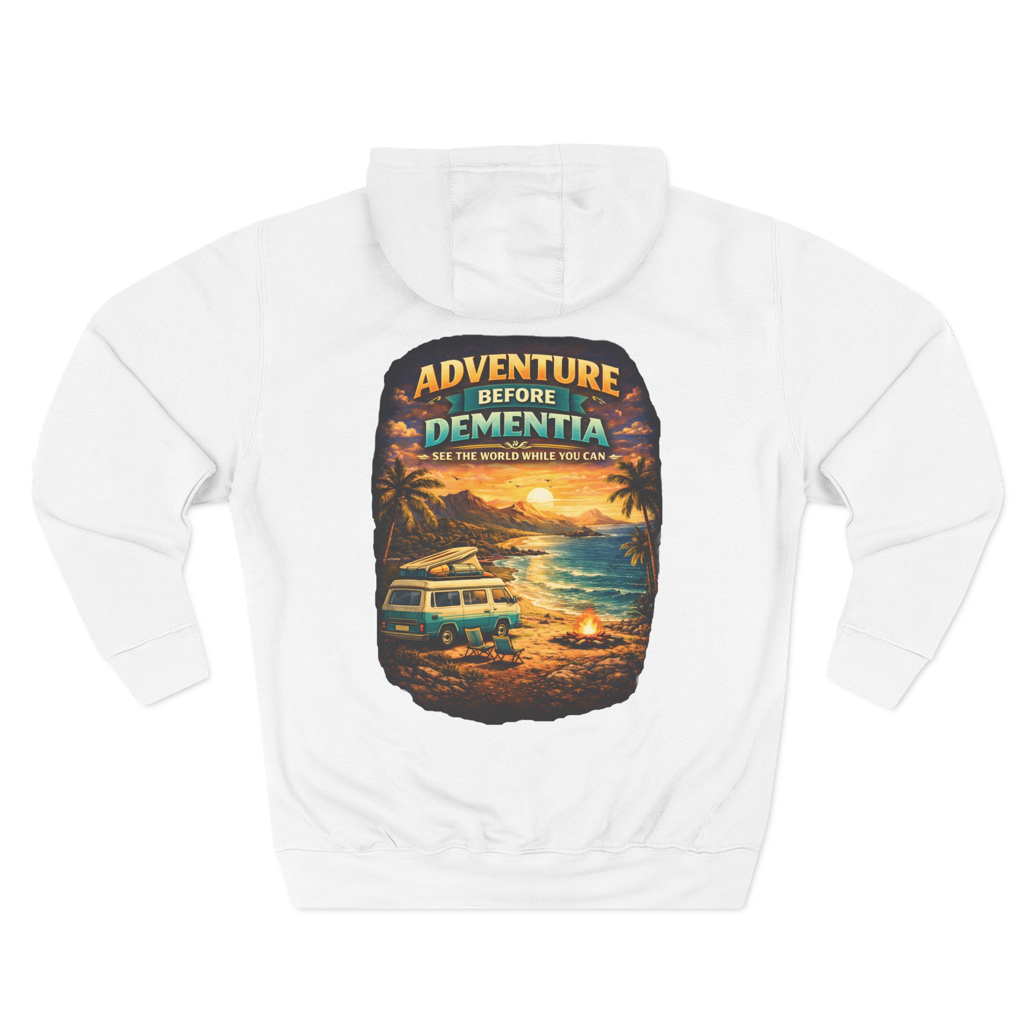 Three-Panel Fleece Hoodie – “Adventure Before Dementia” Design Scenic-Line