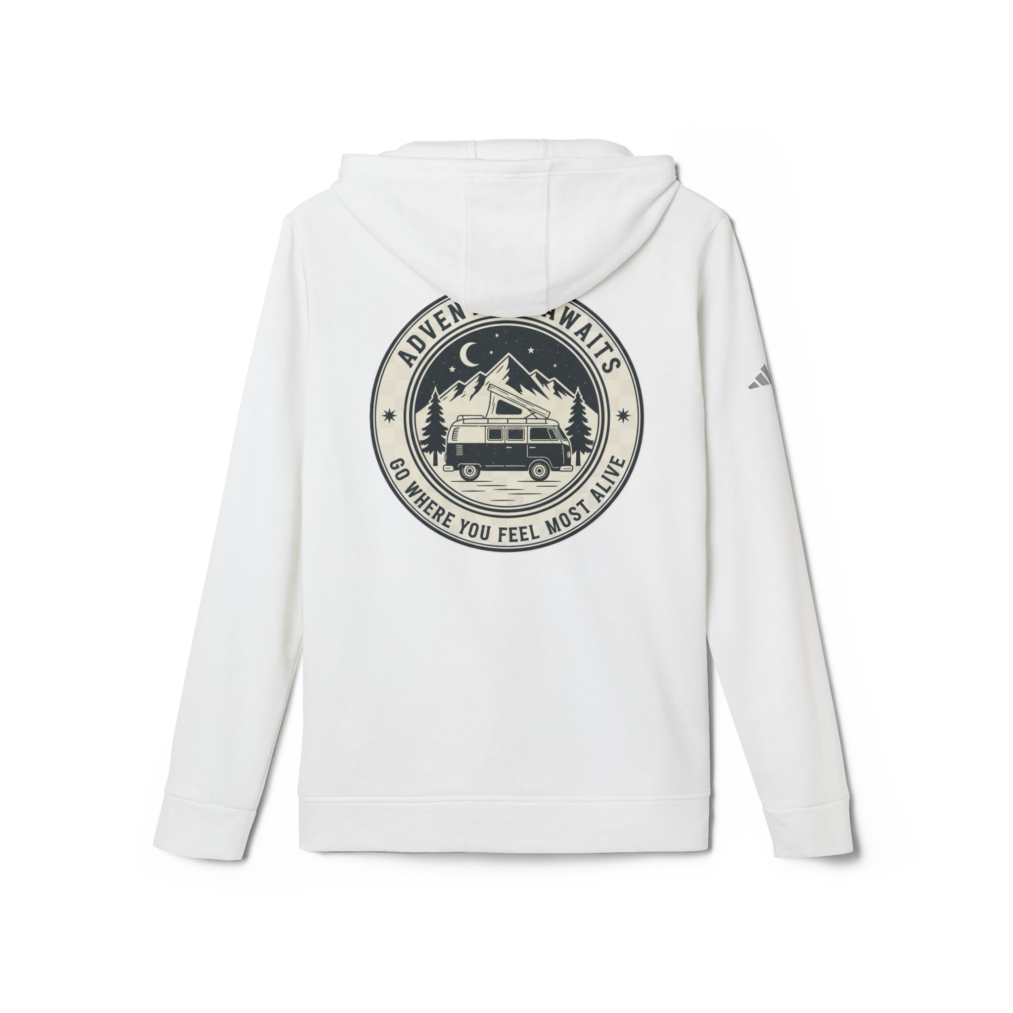Hoodie(Adidas) — ‘Adventure Awaits-Go Where You Feel Most Alive’ Outdoor Travel Pullover (Front + Back Printed)