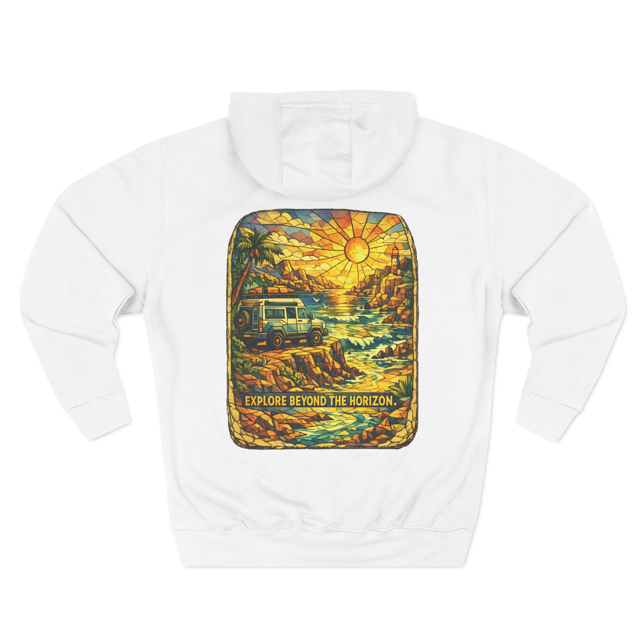 Three-Panel Fleece Hoodie – “Explore Beyond The Horizon” Design Cubic-Line
