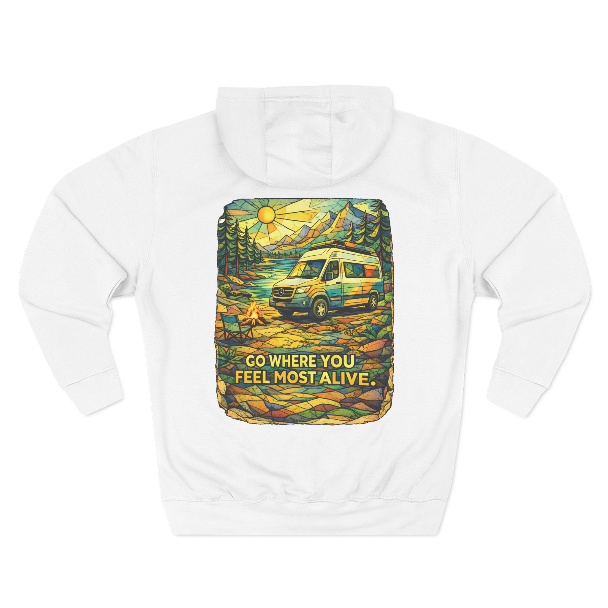 Three-Panel Fleece Hoodie – “Go Where You Feel Alive” Design Minimal-Line