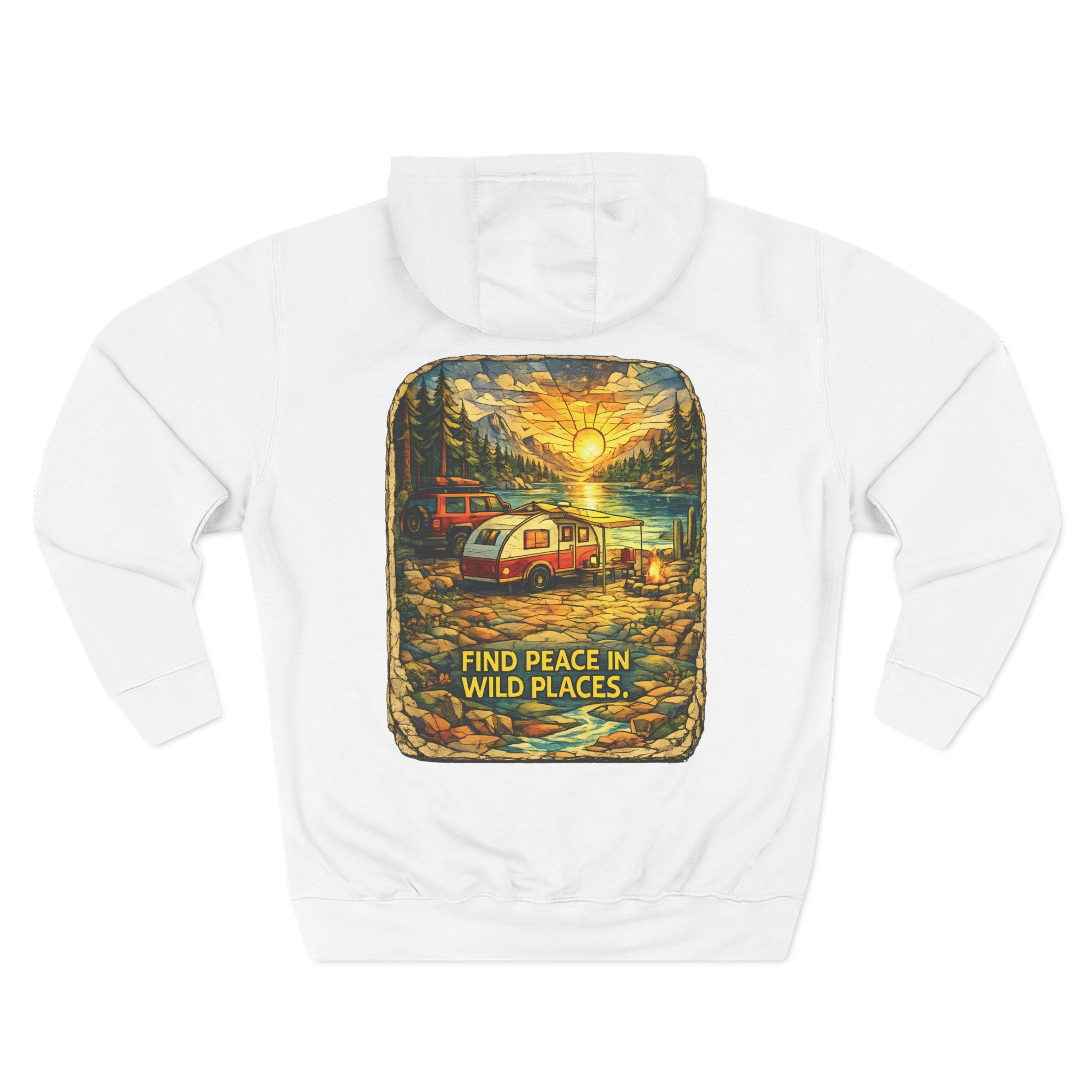 Three-Panel Fleece Hoodie – “Find Peace In Wild Places” Design Cubic-Line