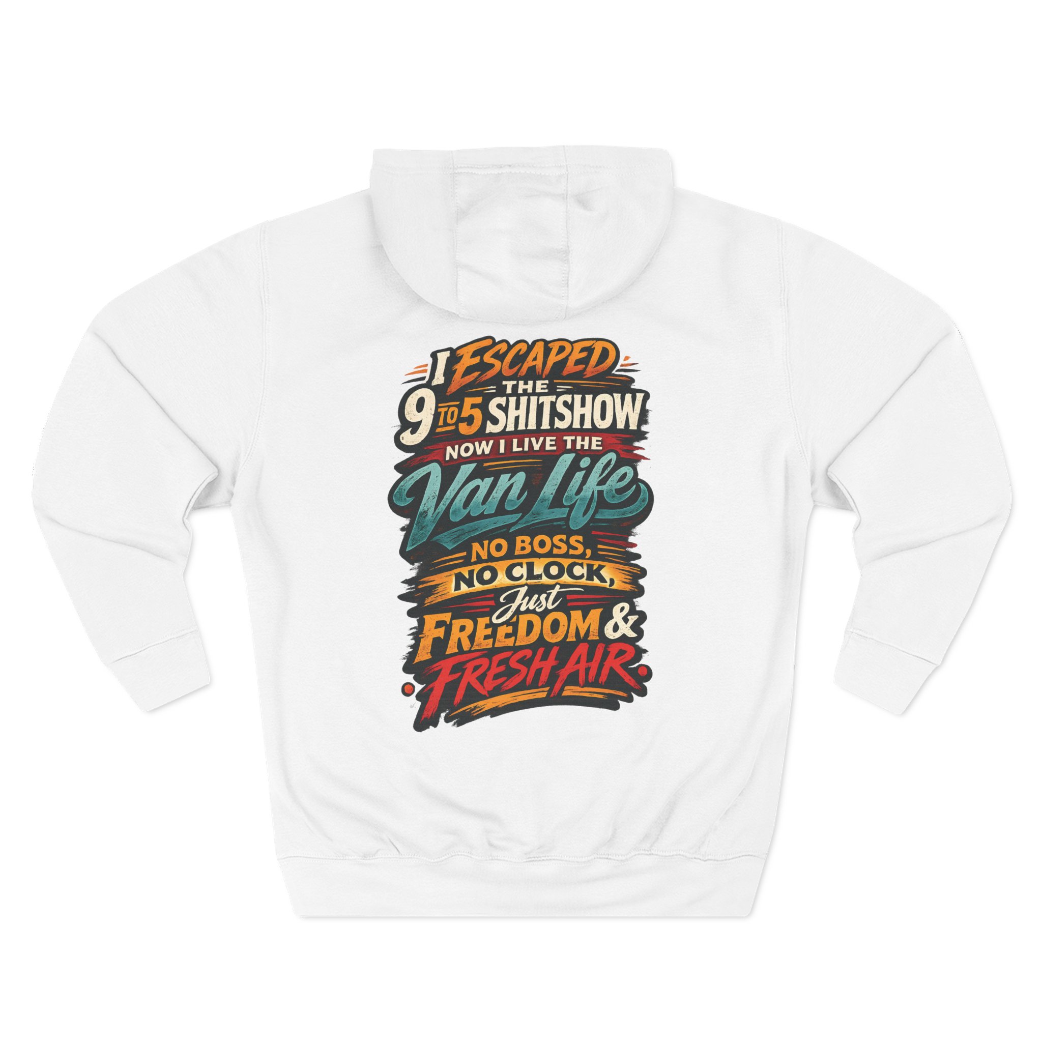 Three-Panel Fleece Hoodie – “I Escaped The 9 To 5” Design F**K-Line