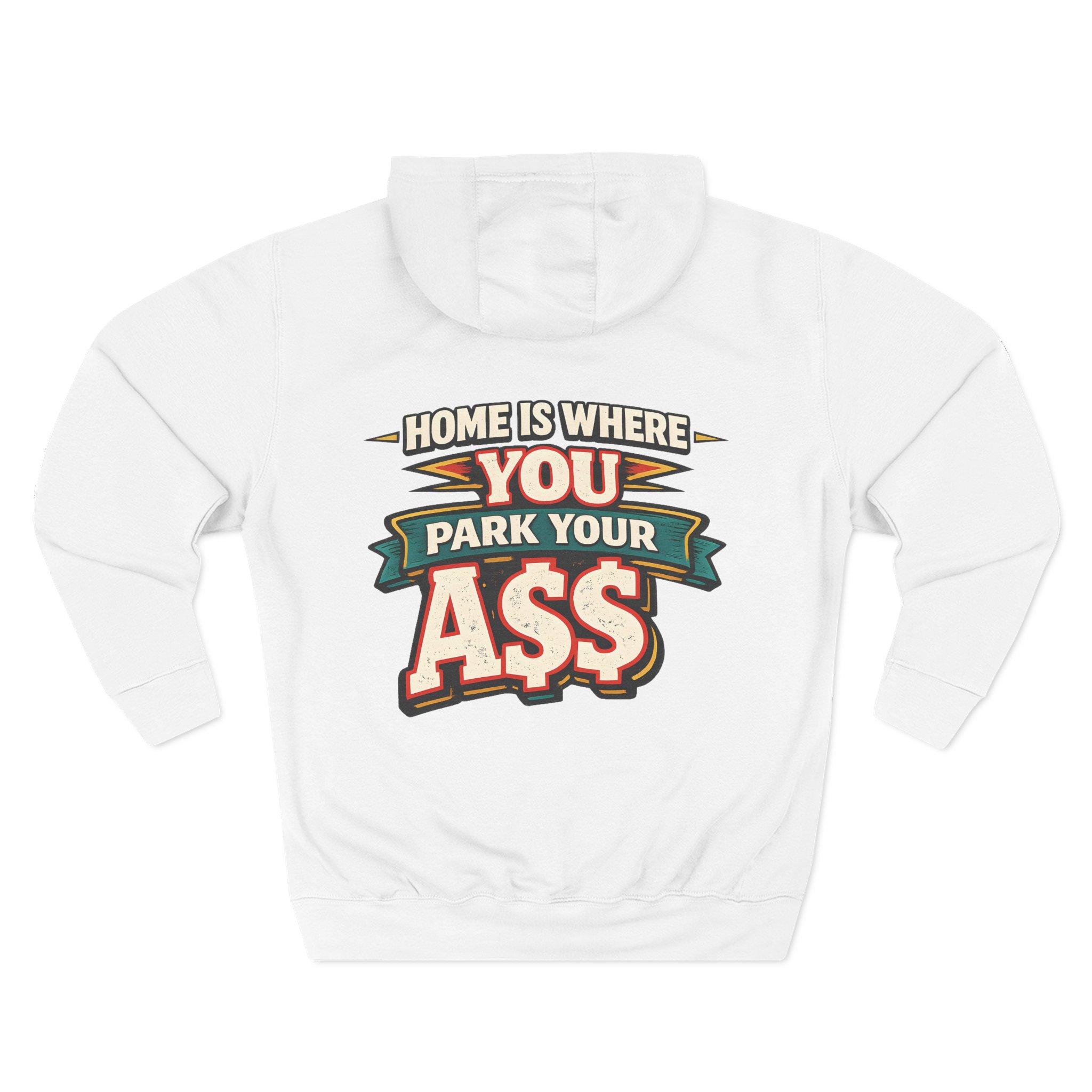 Three-Panel Fleece Hoodie – “Home Is Where You Park Your Ass” Design F**K-Line