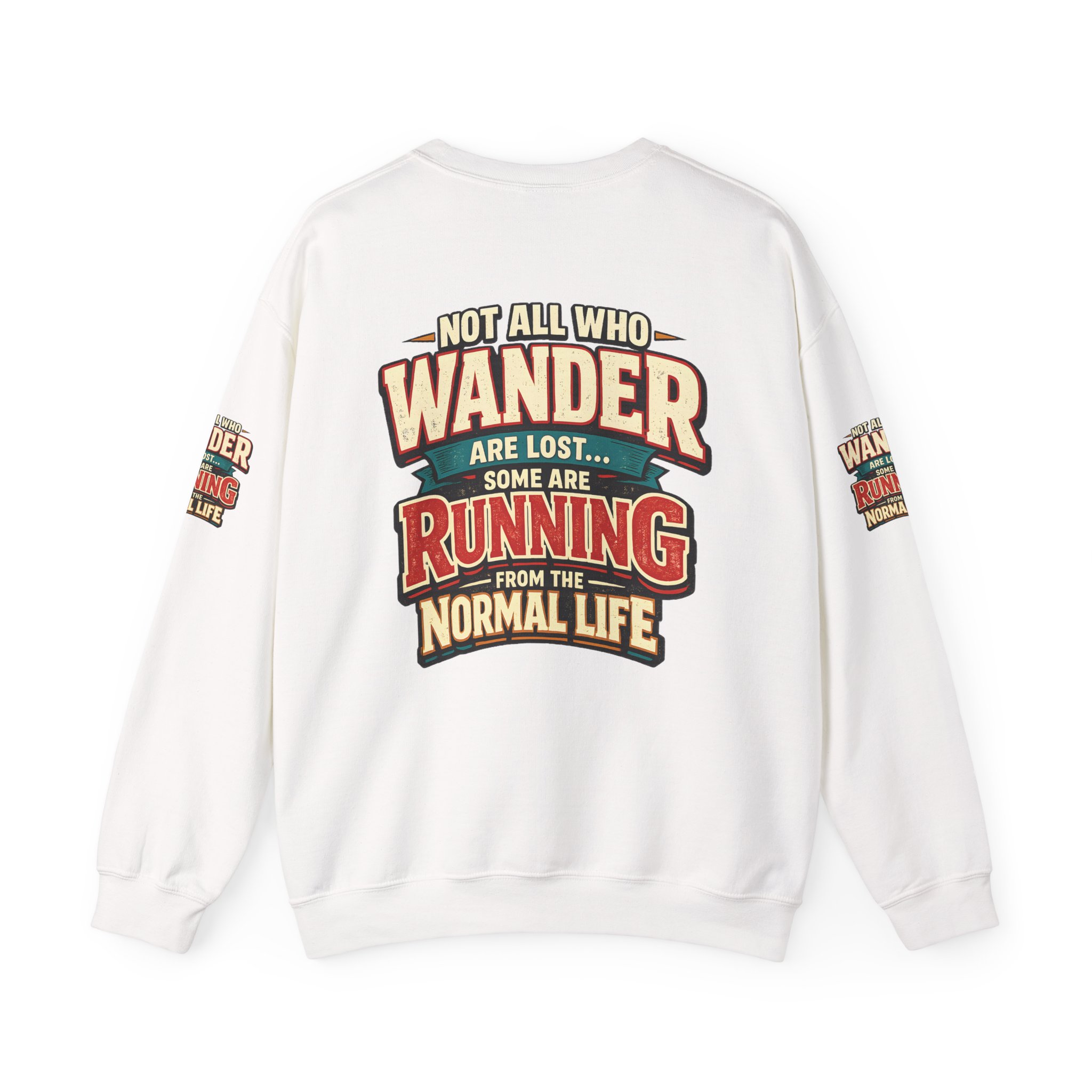 Unisex Heavy Blend™ Crewneck Sweatshirt — “Not All Who Wander Are Lost” Design F**K-Line