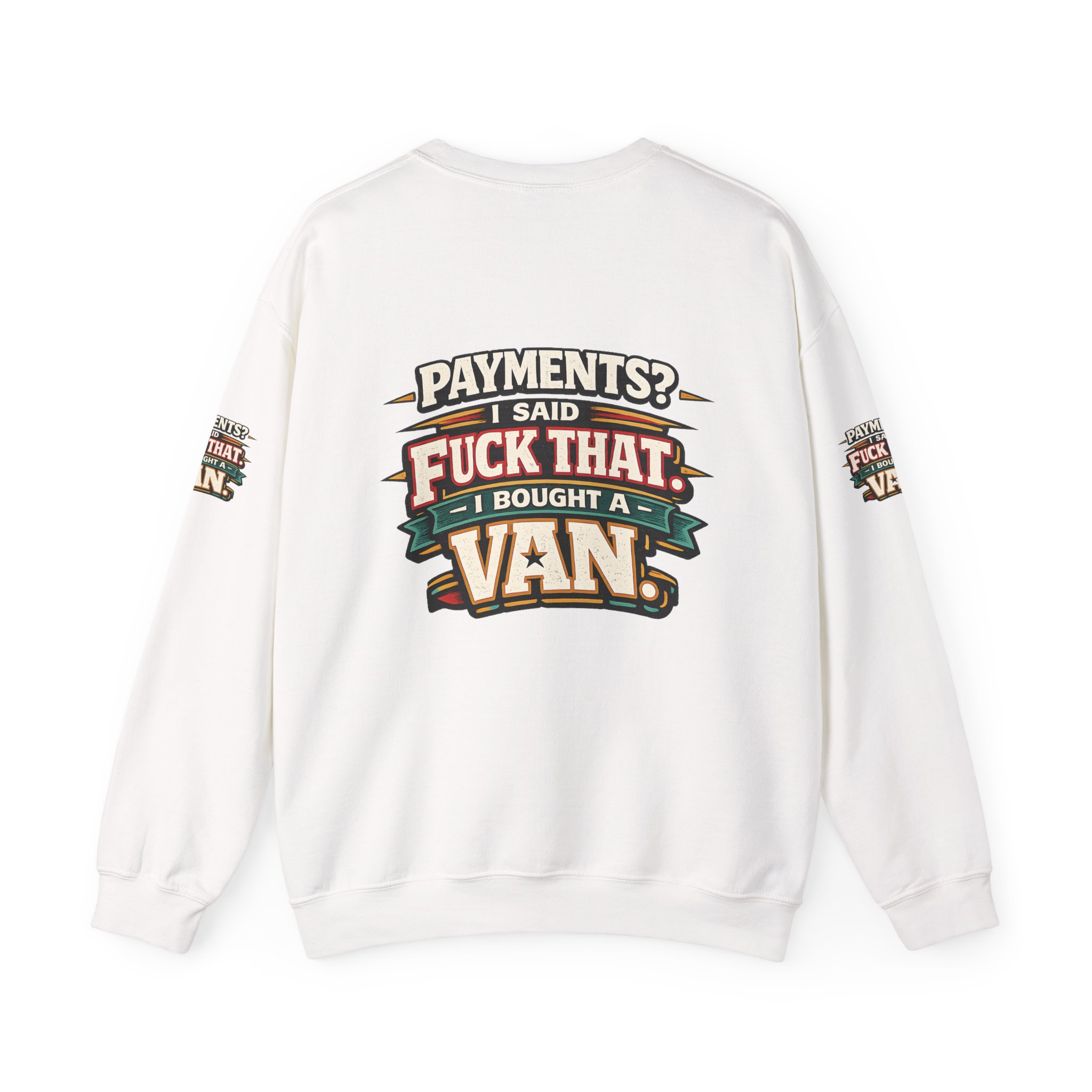 Unisex Heavy Blend™ Crewneck Sweatshirt — “My Van Runs On Gas” Design F**K-Line