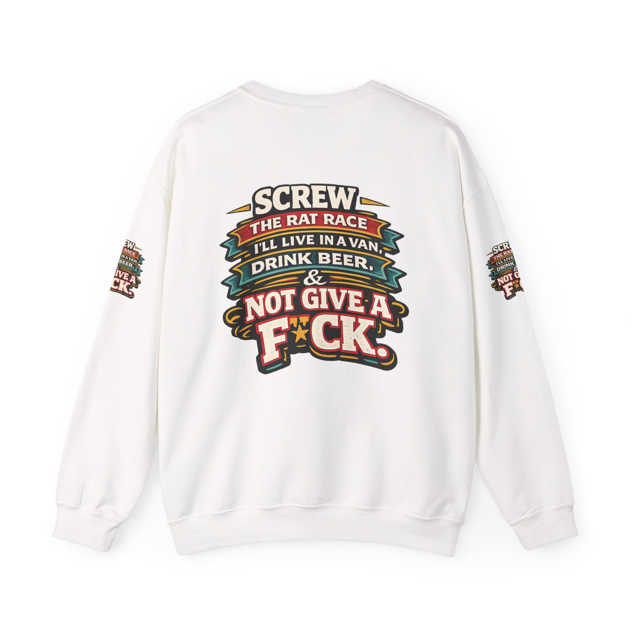 Unisex Heavy Blend™ Crewneck Sweatshirt — “Screw The Rat Race” Design F**K-Line