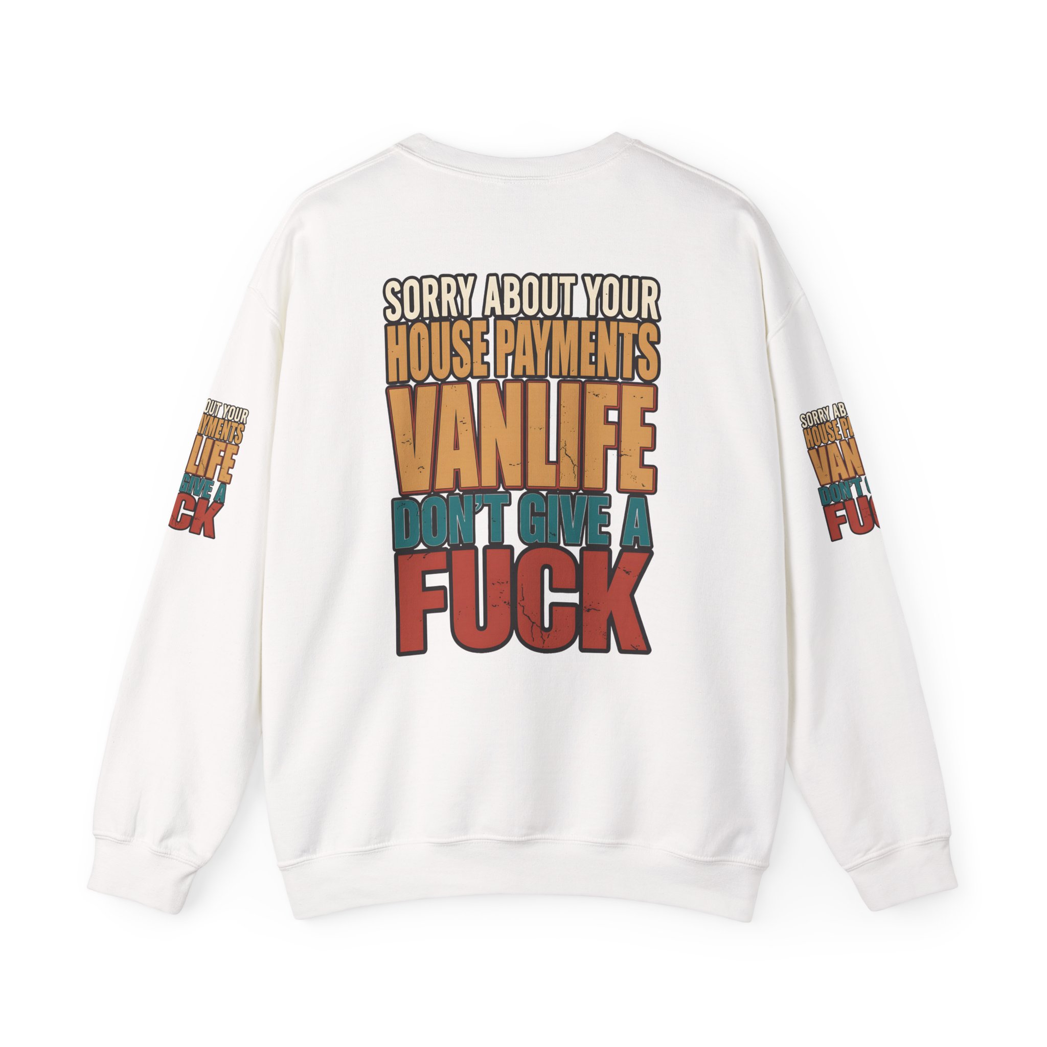 Unisex Heavy Blend™ Crewneck Sweatshirt — “Sorry About Your House Payments” Design F**K-Line