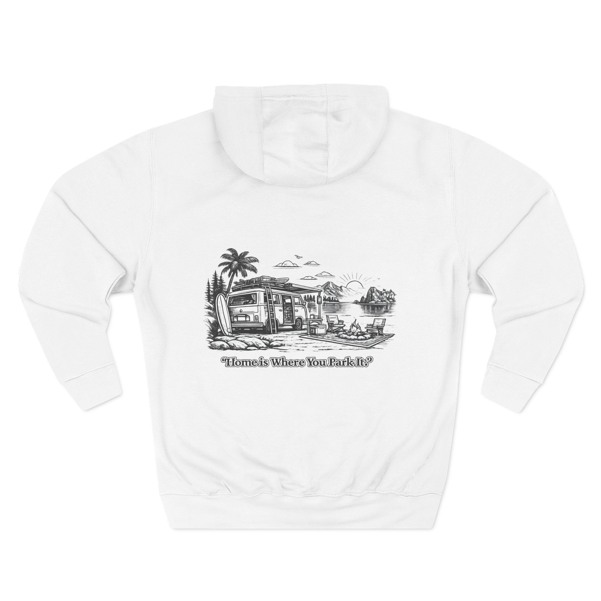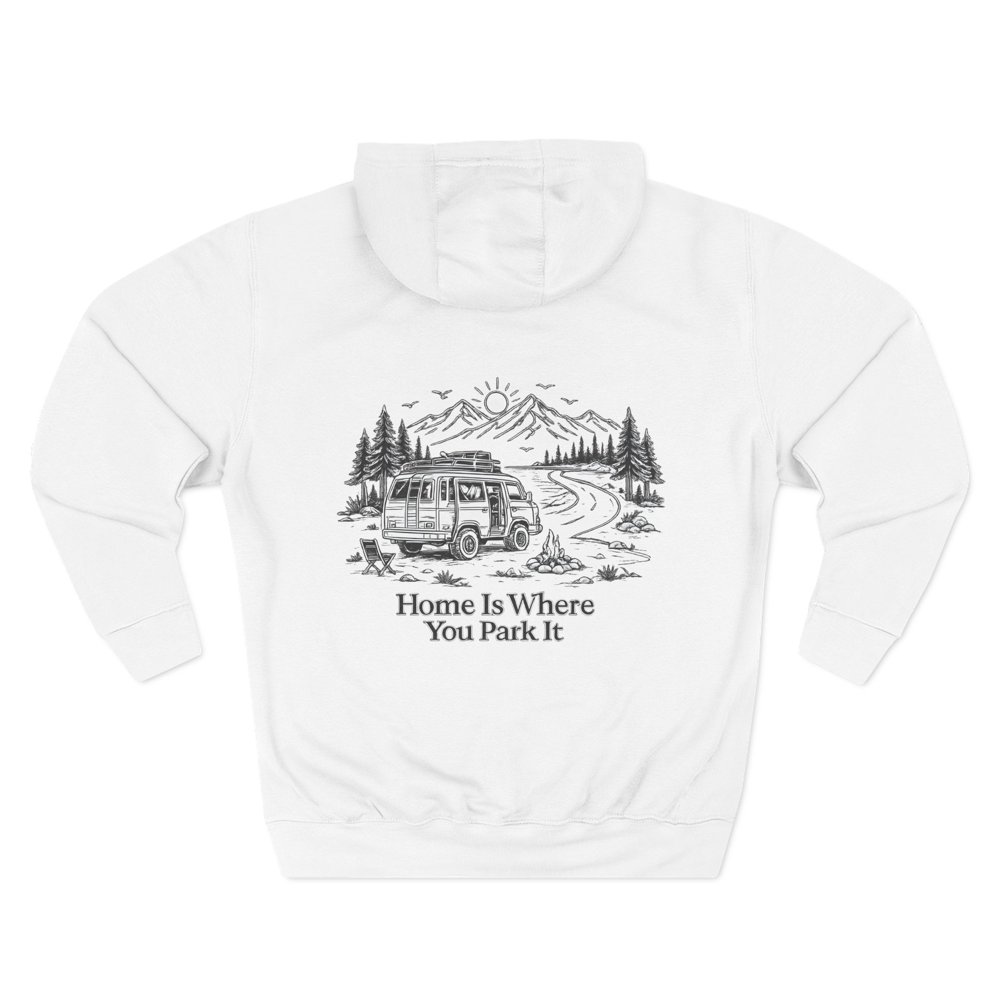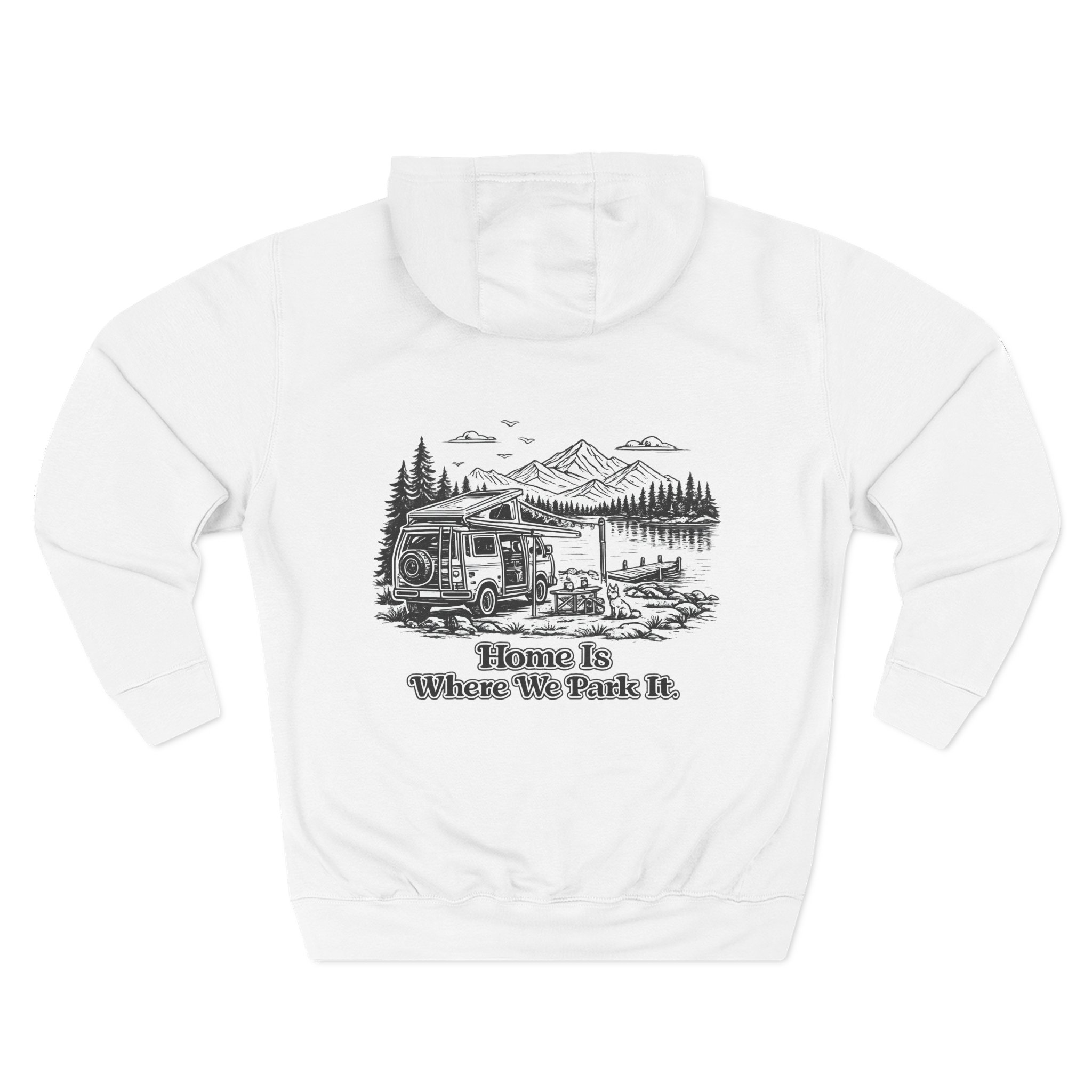 Three-Panel Fleece Hoodie – “Home Is Where You Park It” Design Minimal-Line