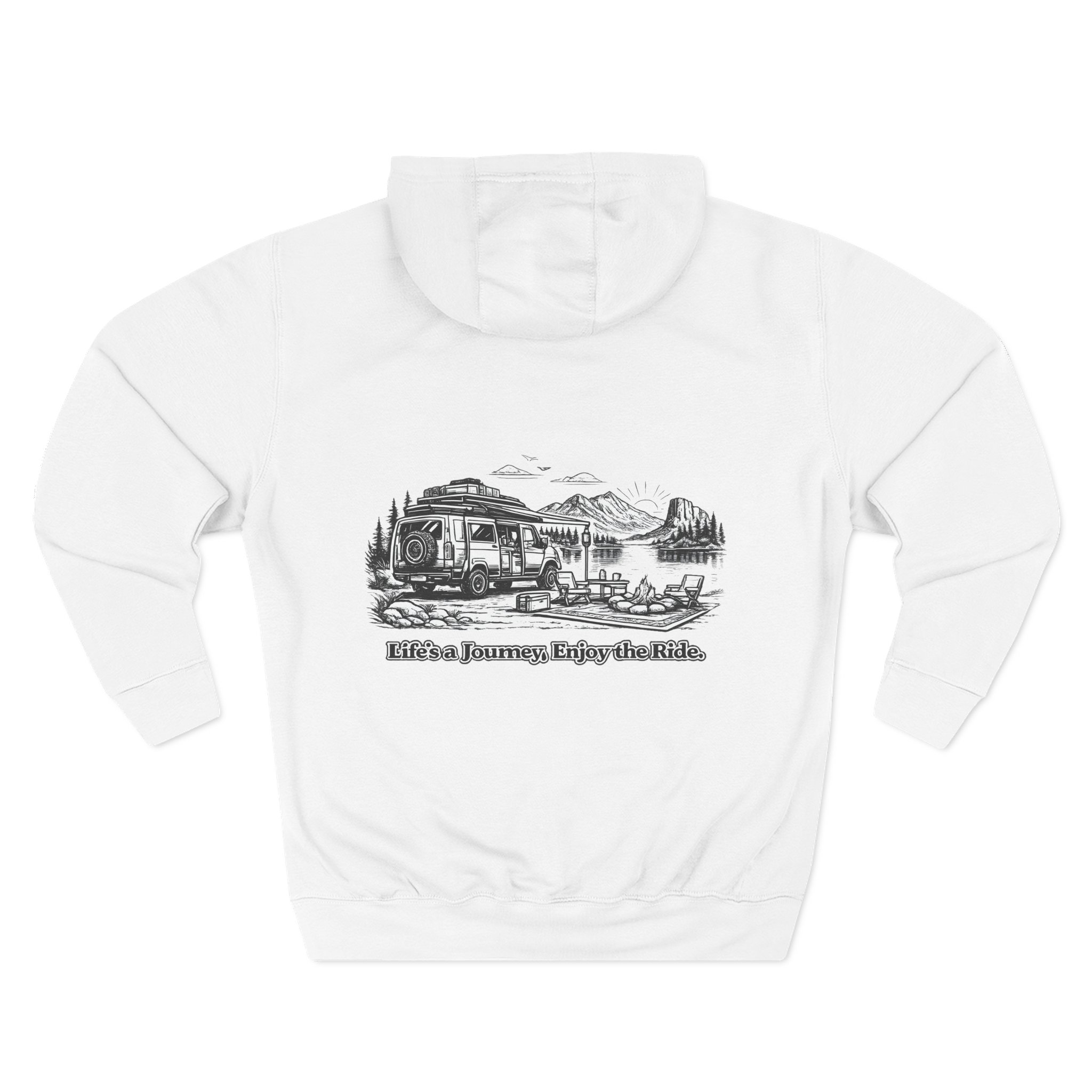 Three-Panel Fleece Hoodie – “Lifes A Journey,Enjoy The Ride” Design Minimal-Line