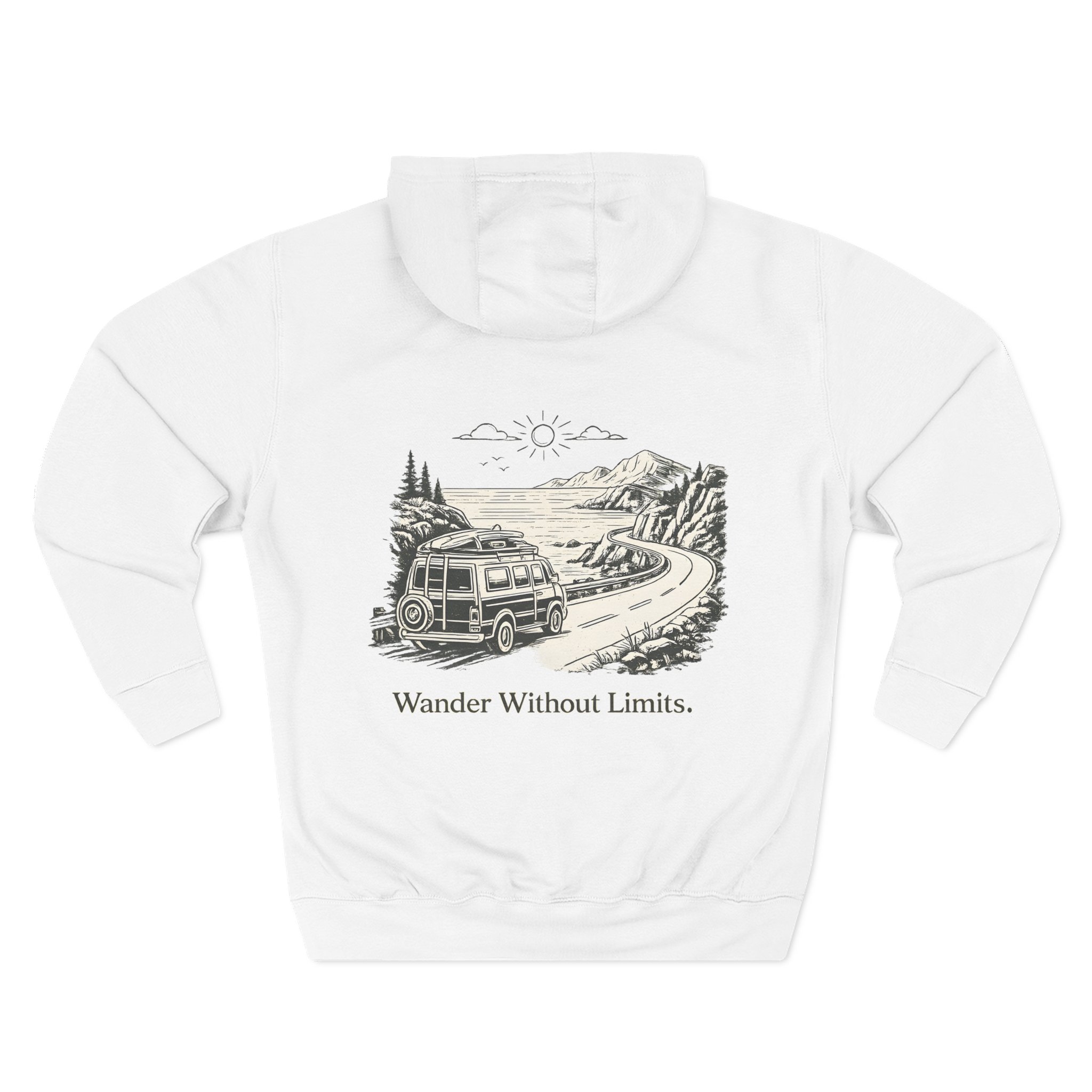 Three-Panel Fleece Hoodie – “Wander Without Limits” Design Minimal-Line