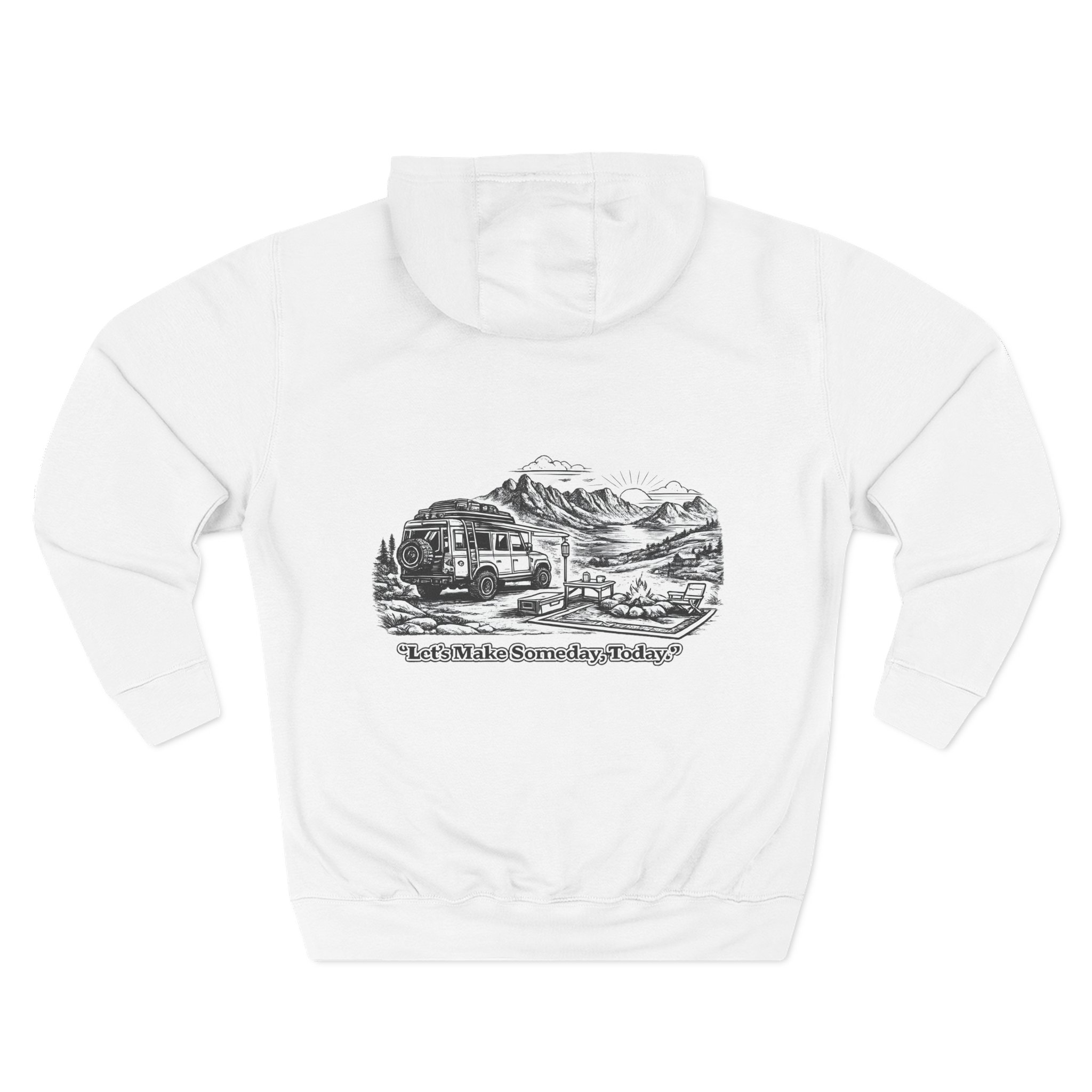 Three-Panel Fleece Hoodie – “Lets make Someday, Today?” Design Minimal-Line