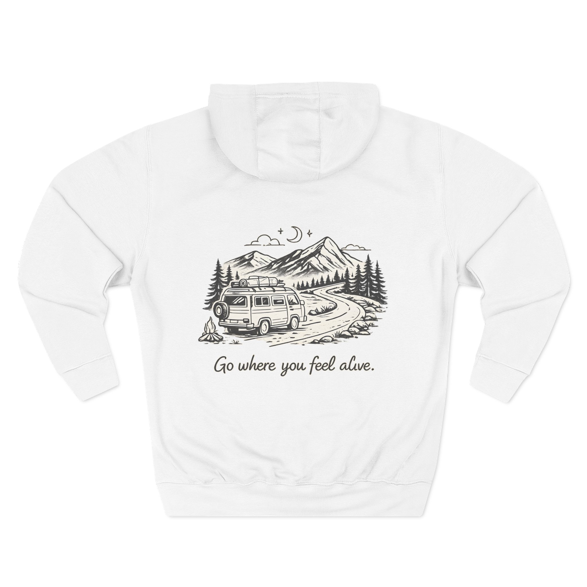 Three-Panel Fleece Hoodie – “Go Where You Feel Alive” Design Minimal-Line