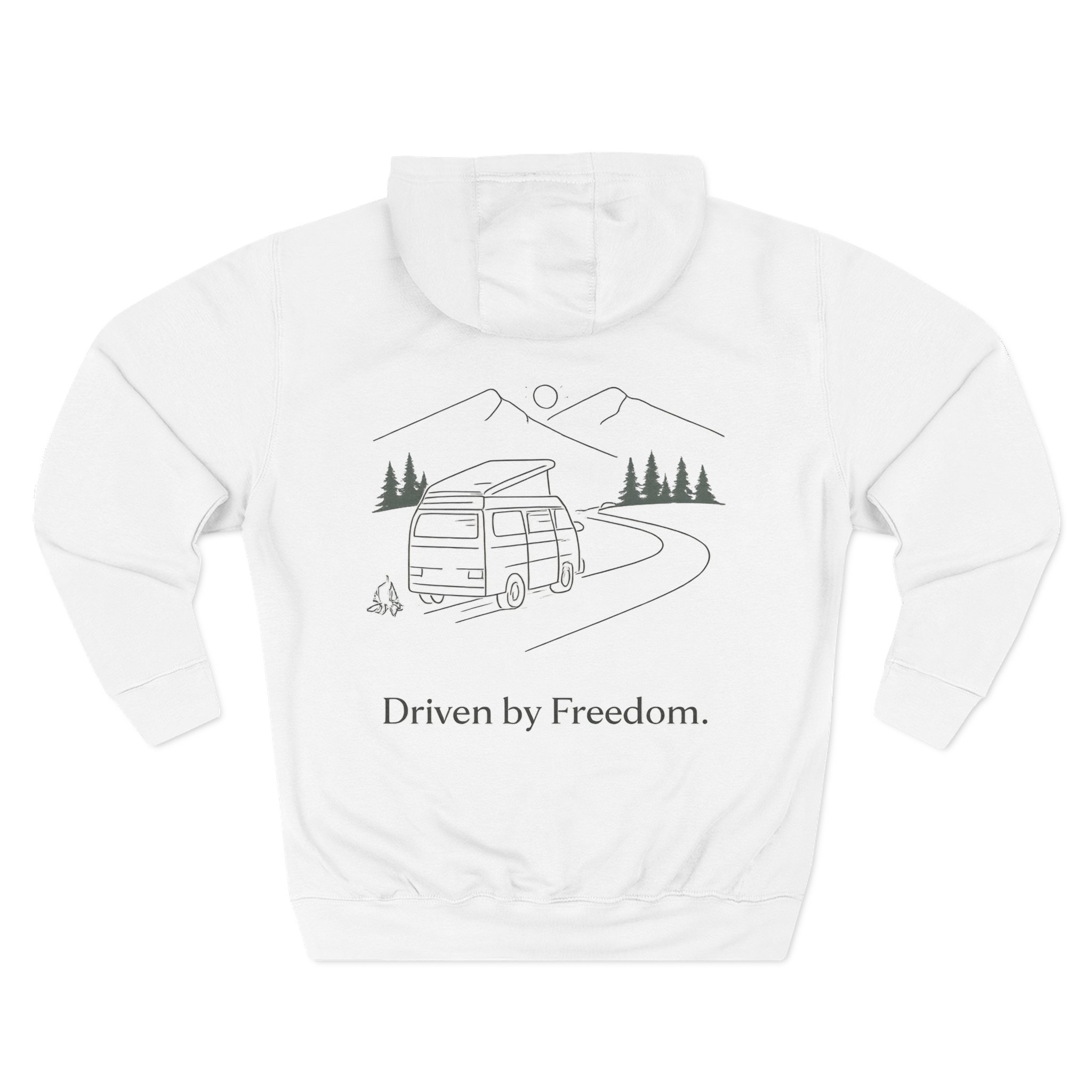 Three-Panel Fleece Hoodie – “Driven By Freedom” Design Minimal-Line