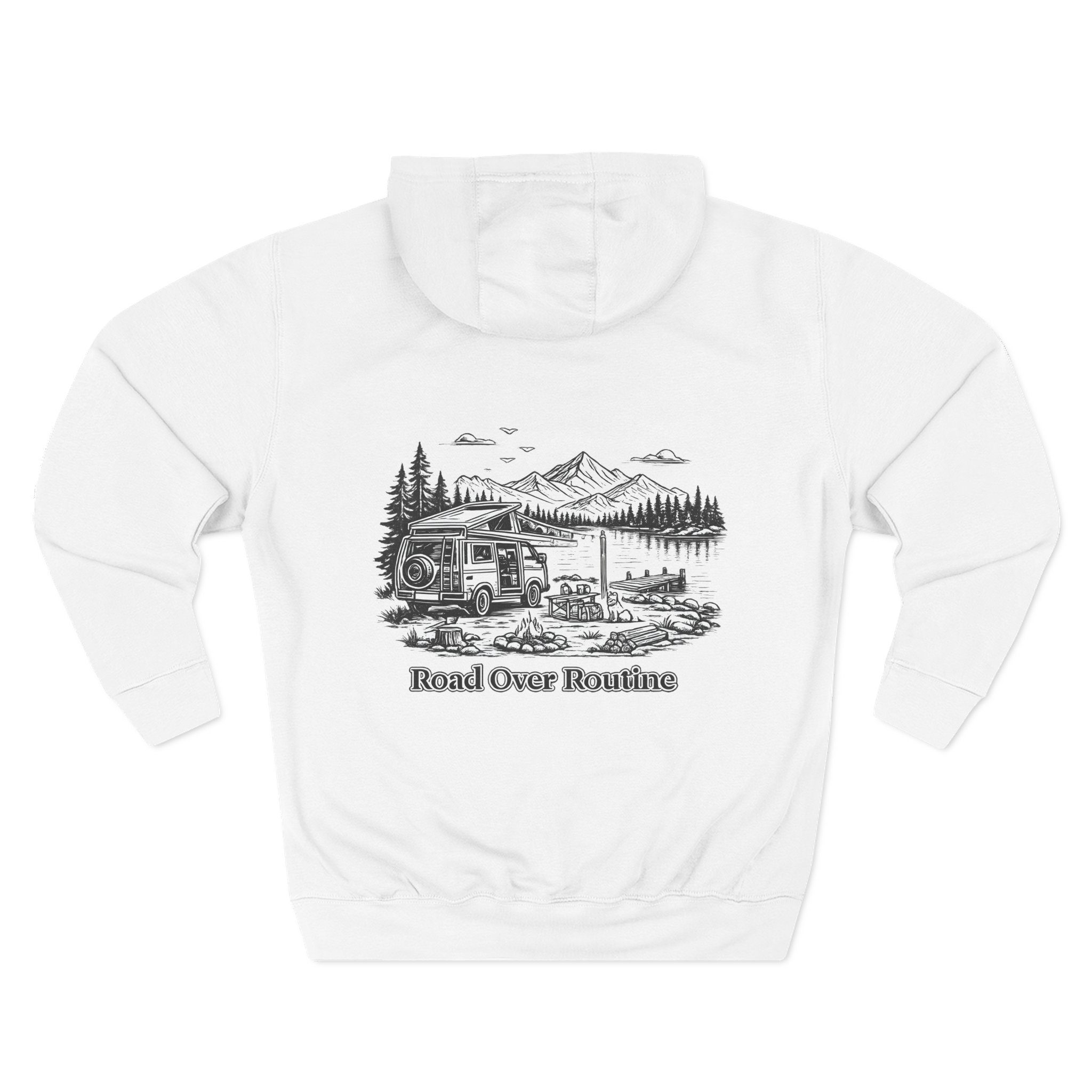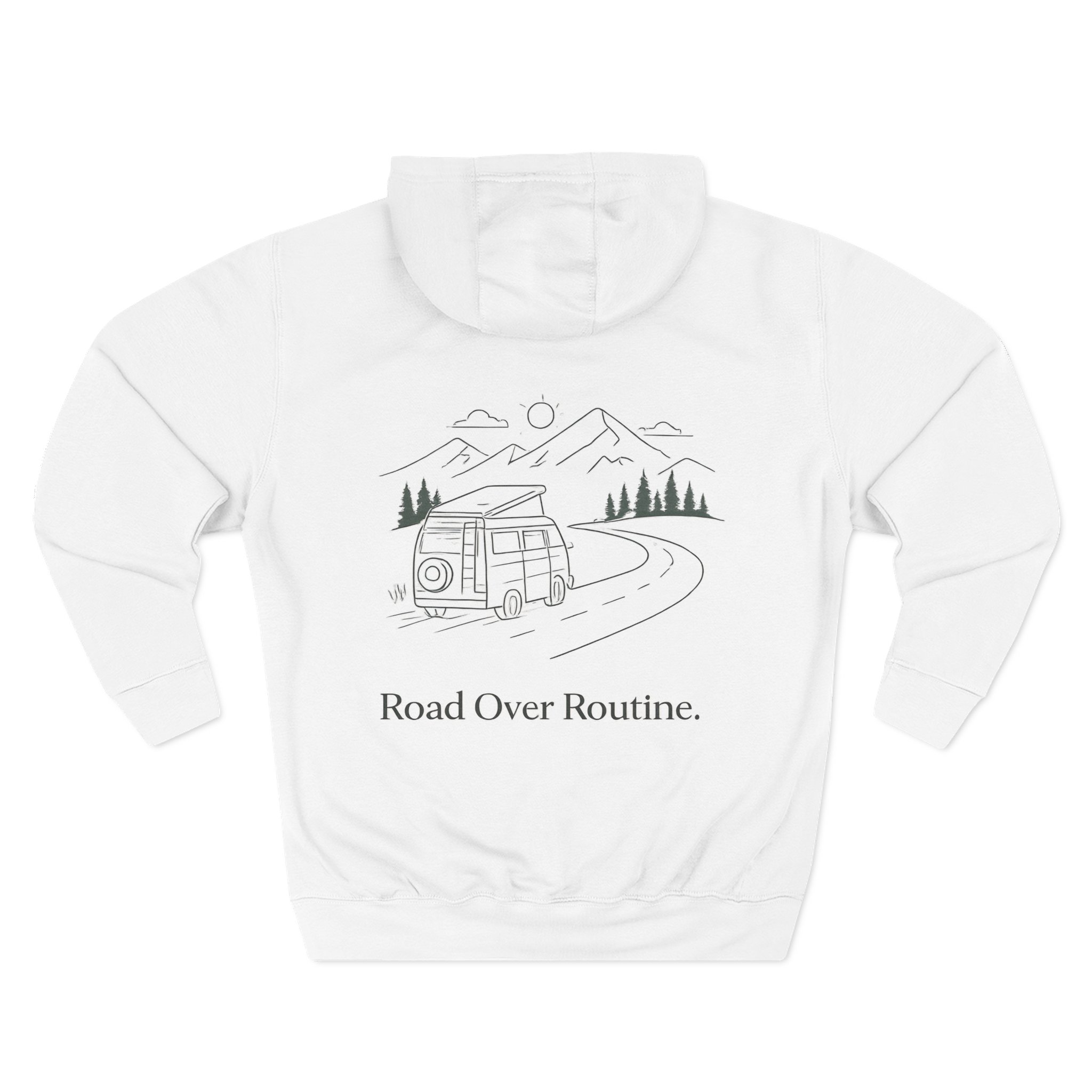 Three-Panel Fleece Hoodie – “Road Over Routine” Design Minimal-Line