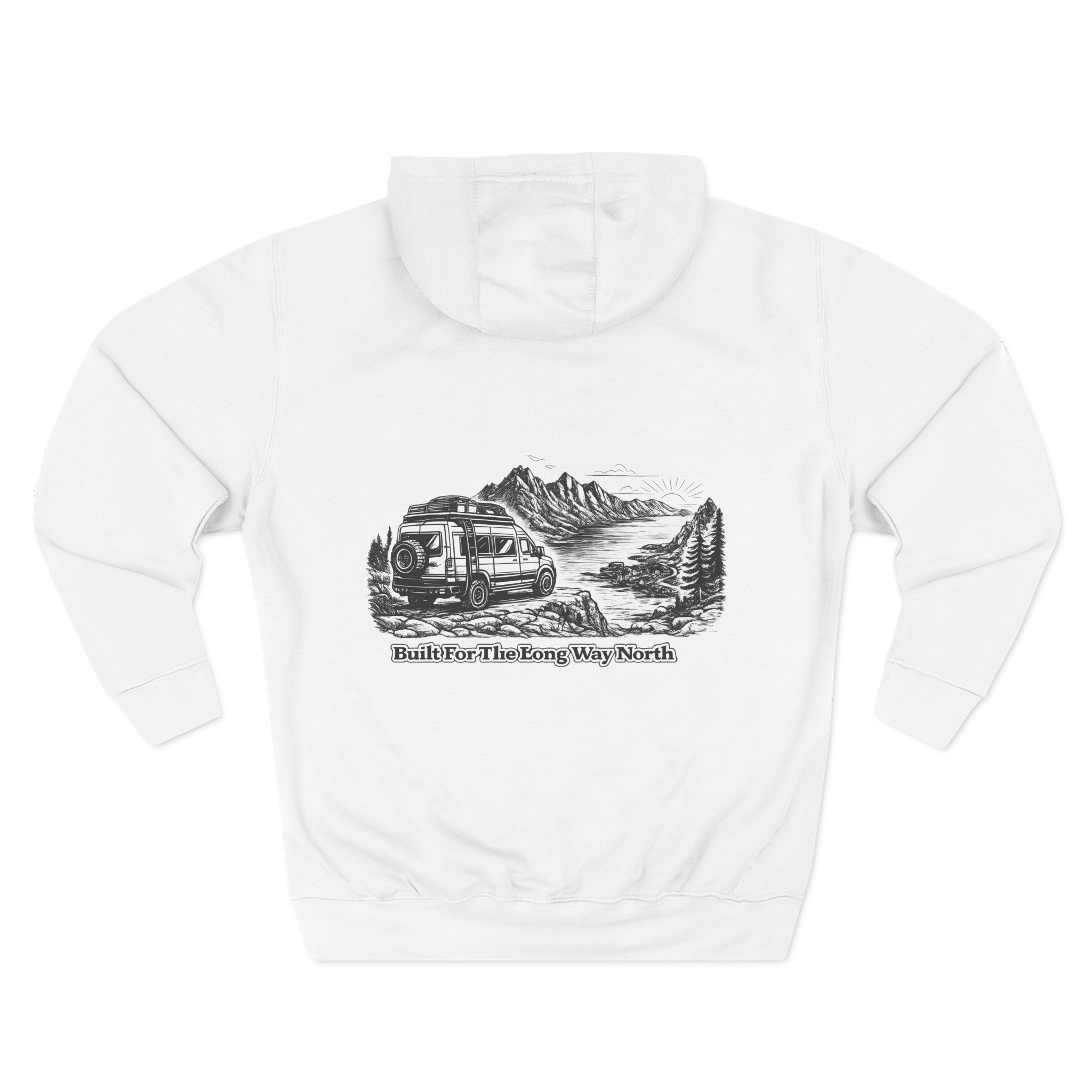 Three-Panel Fleece Hoodie – “Built For The Long Way North” Design Minimal-Line