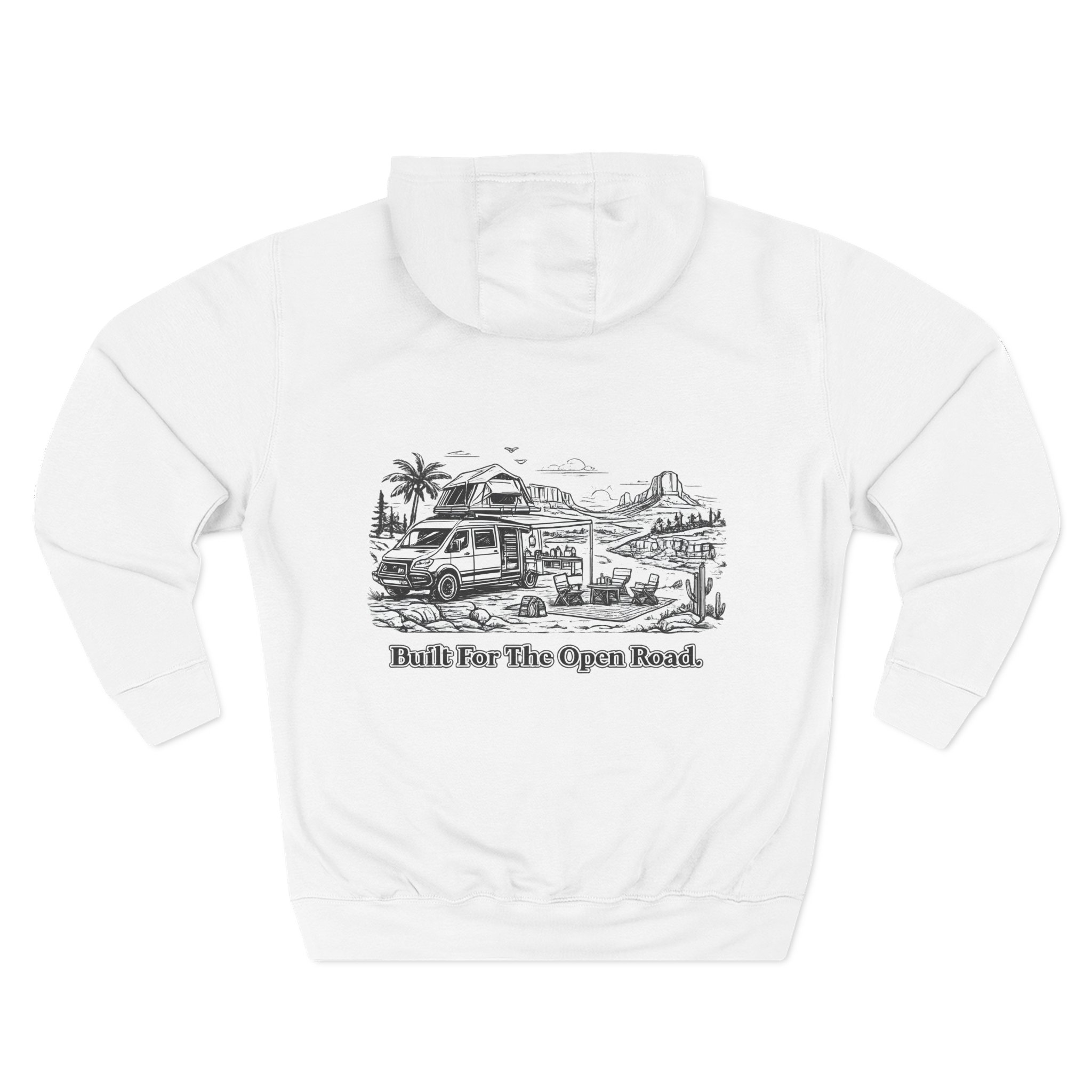 Three-Panel Fleece Hoodie – “Built For The Open Road” Design Minimal-Line