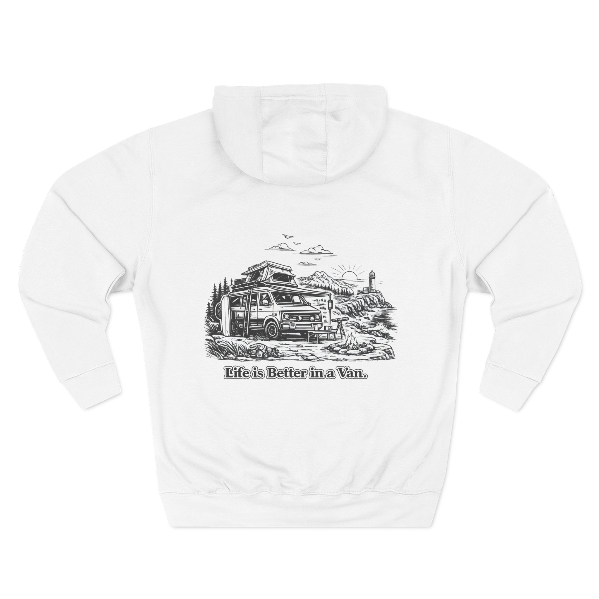 Three-Panel Fleece Hoodie – “Life Is Better In A Van” Design Minimal-Line