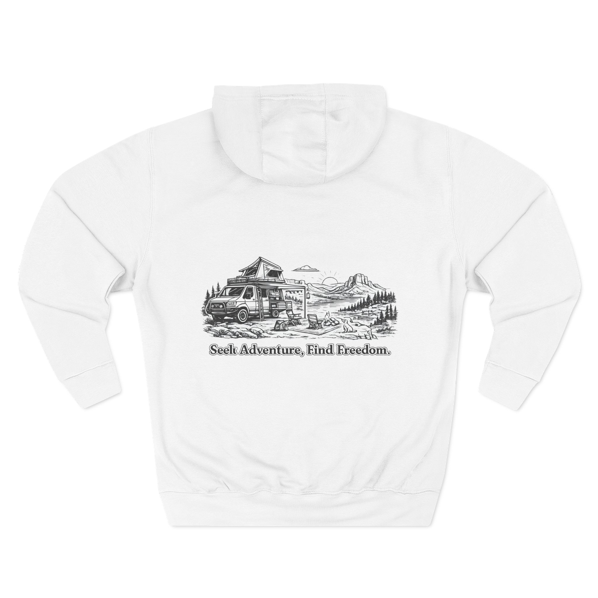 Three-Panel Fleece Hoodie – “Seek Adventure, Find Freedom” Design Minimal-Line