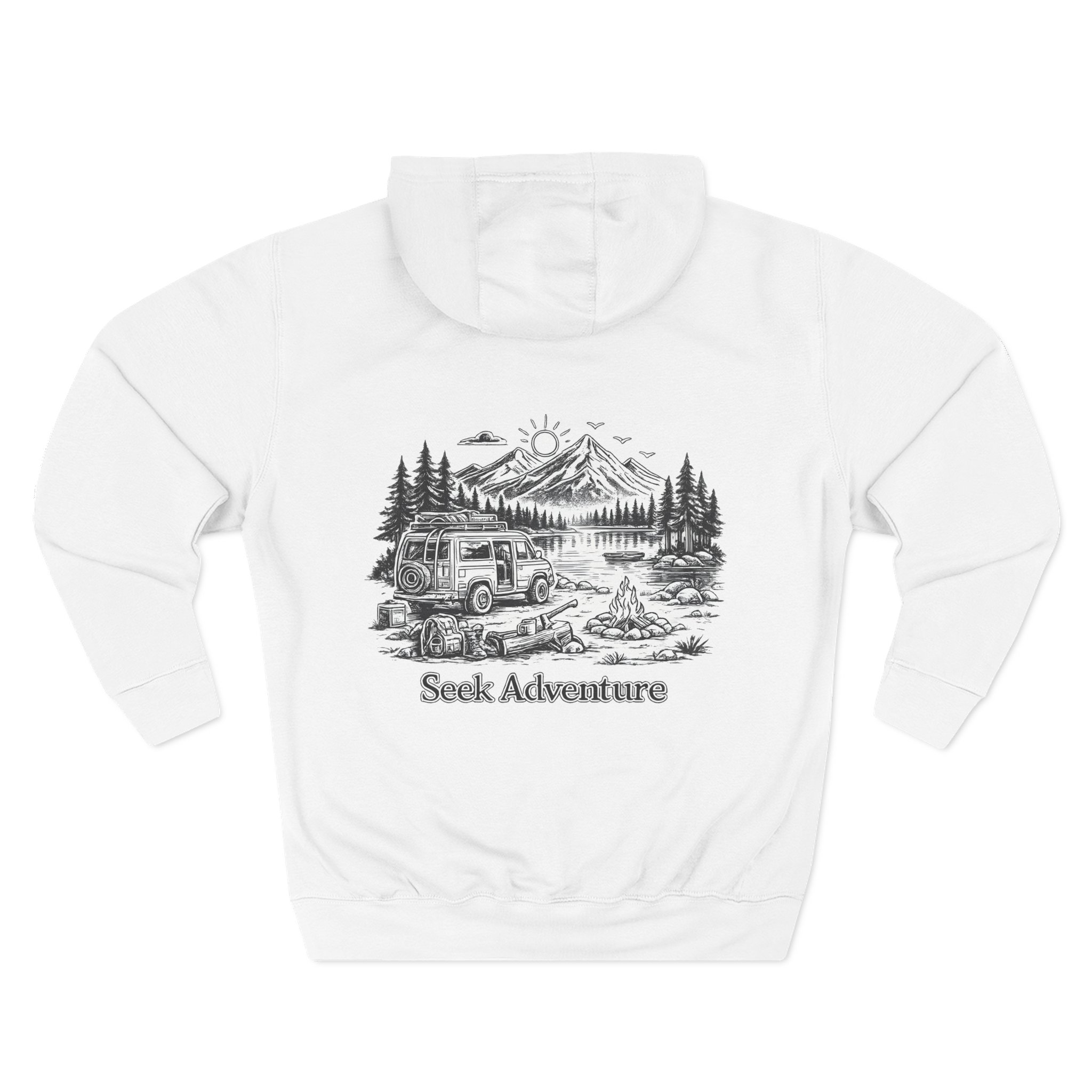 Three-Panel Fleece Hoodie – “Seek Adventure” Design Minimal-Line