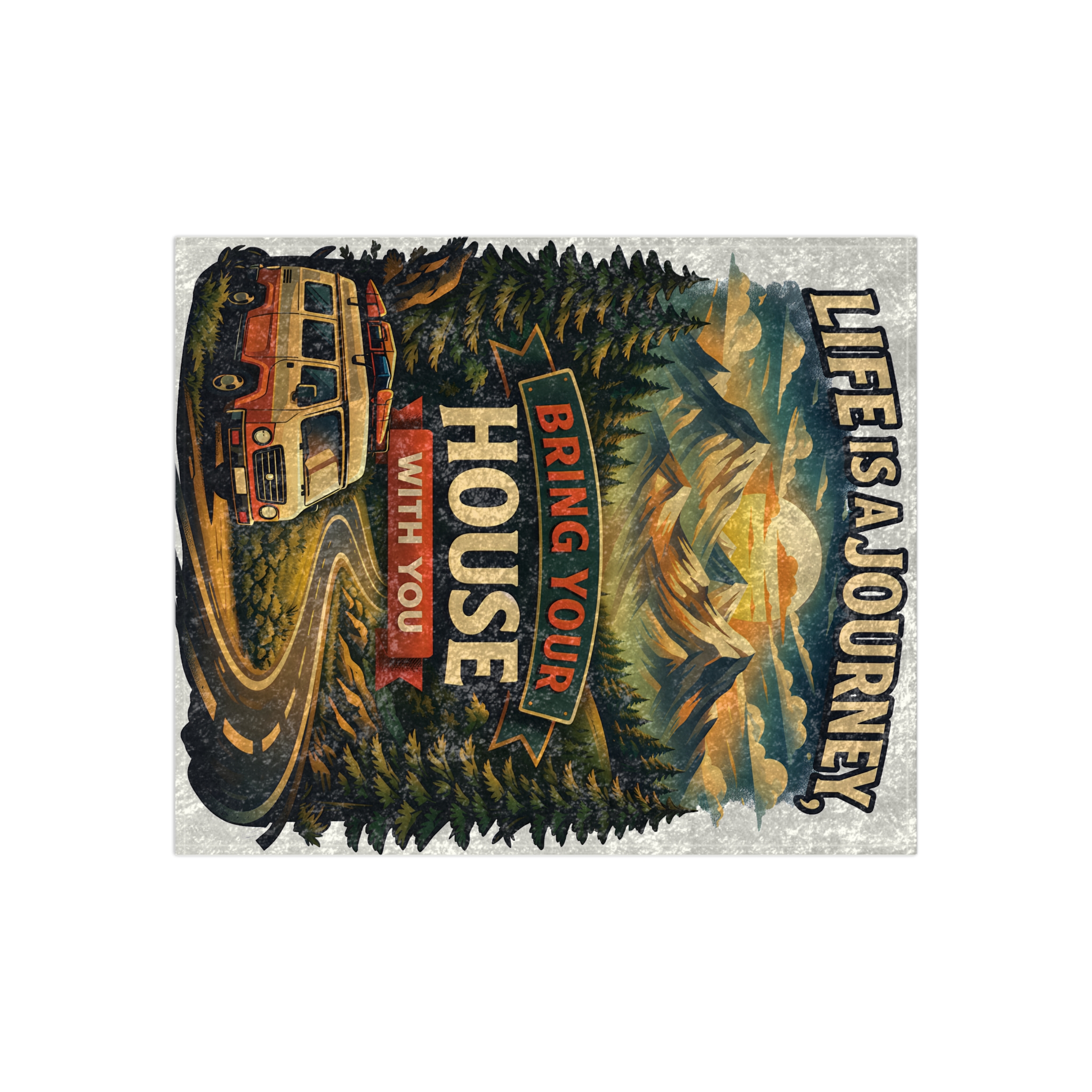 Crushed Velvet Blanket —”Live Is A Journey-Bring Your House With You” Design Scenic-Line (Campervan)