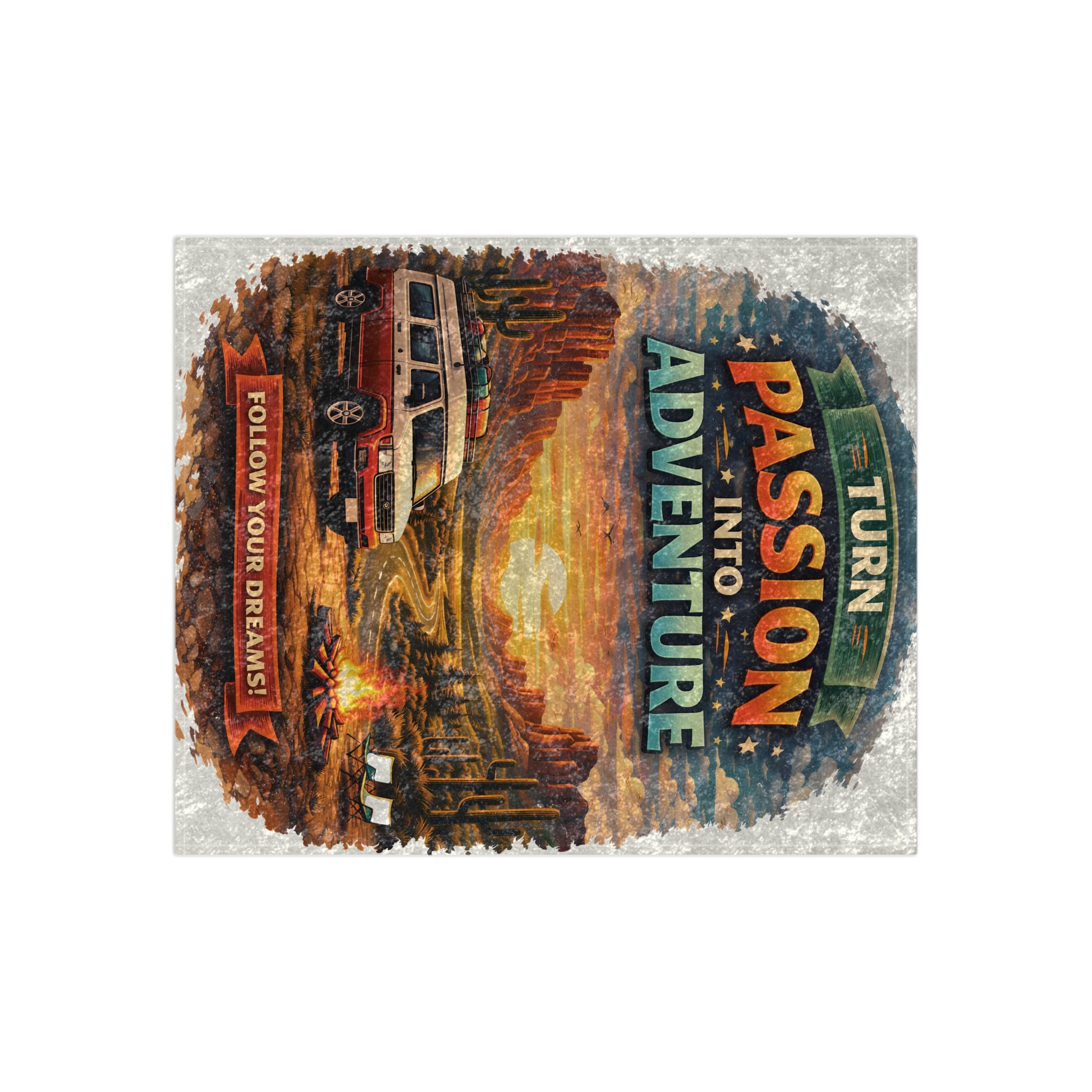 Crushed Velvet Blanket —”Turn Passion Into Adventure” Design Scenic-Line (Campervan)