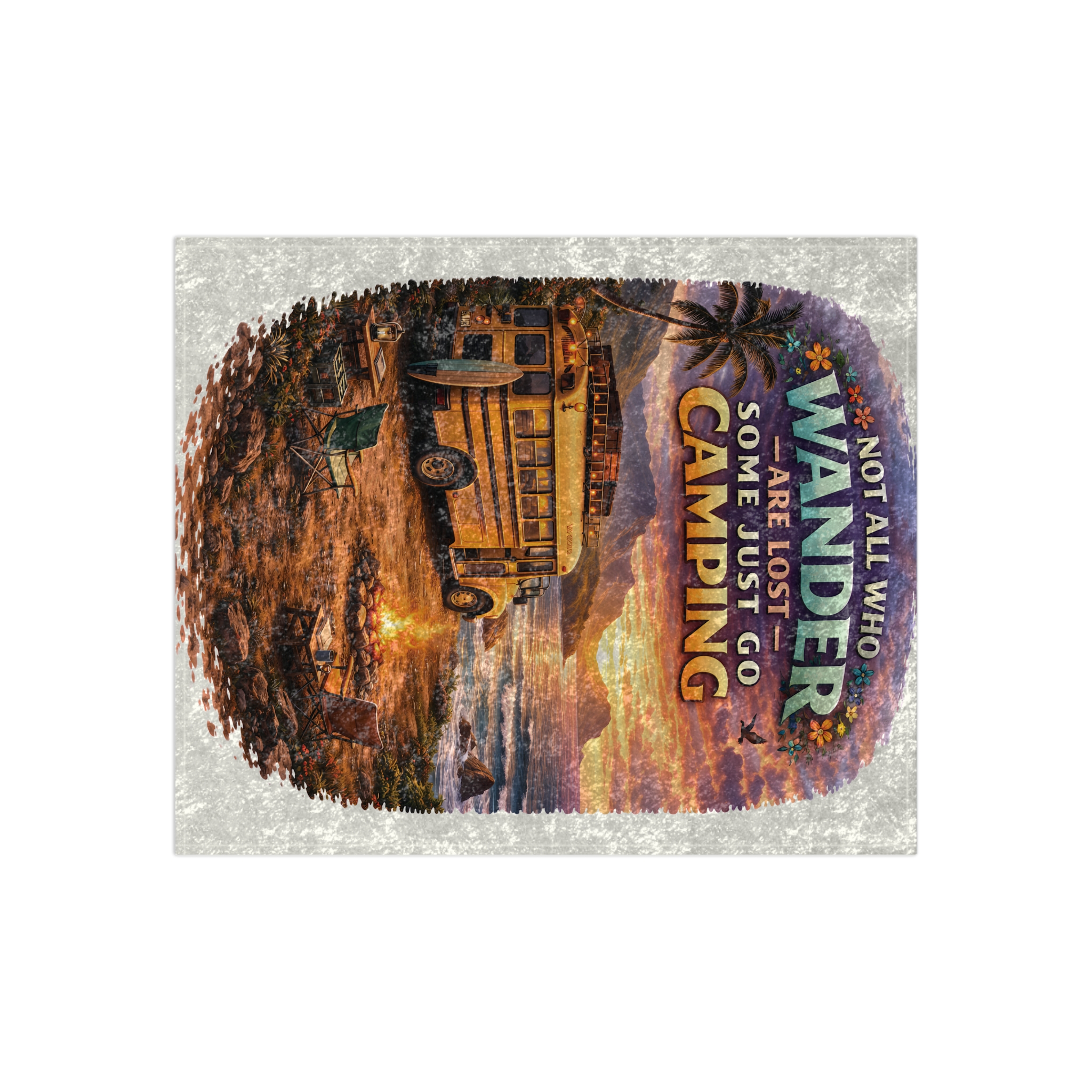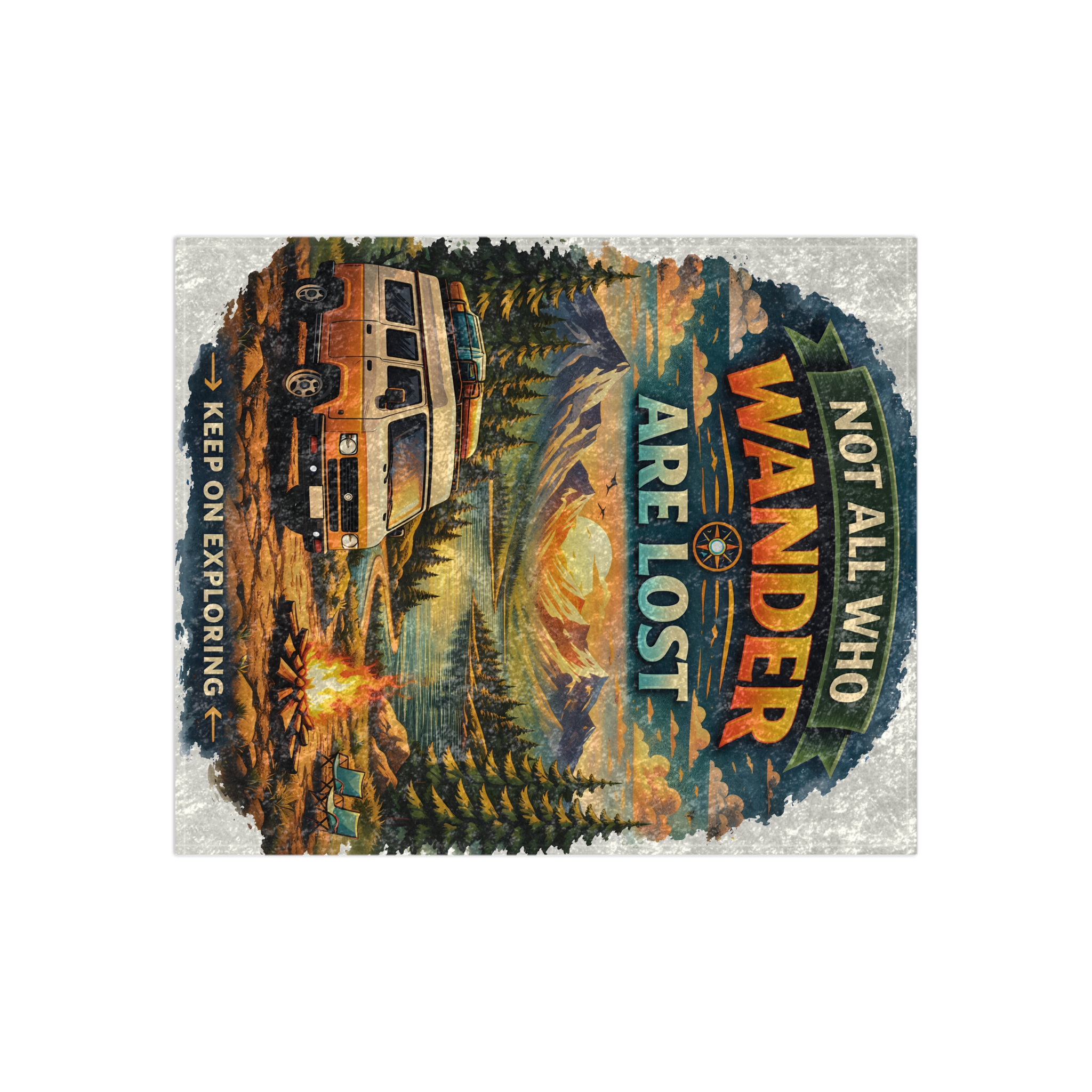 Crushed Velvet Blanket —”Not All Who Wander Are Lost” Design Scenic-Line (Campervan)