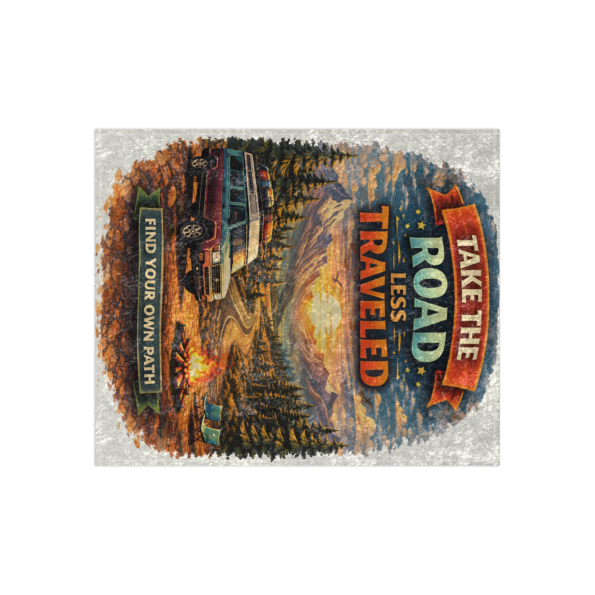 Crushed Velvet Blanket —”Take The Road Less Traveled” Design Scenic-Line (Campervan)