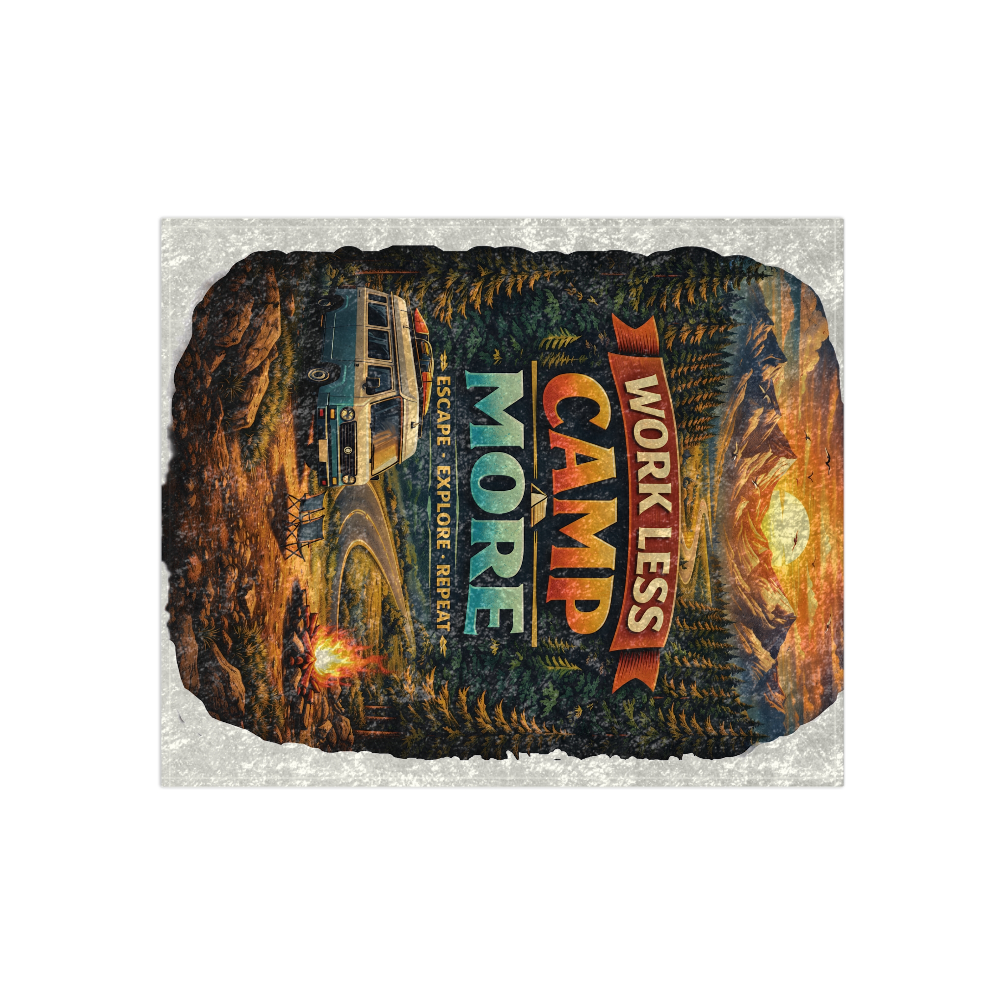Crushed Velvet Blanket —”Work Less-Camp More” Design Scenic-Line (Campervan)