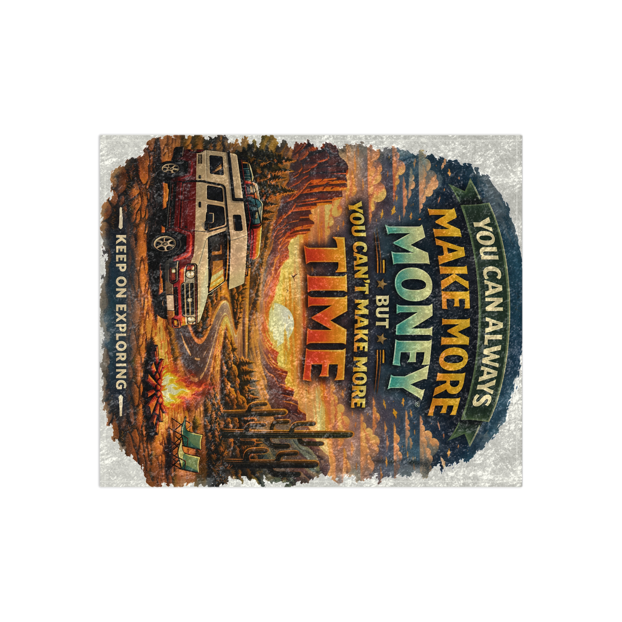 Crushed Velvet Blanket —”You Can Always Make More Money” Design Scenic-Line (Campervan)