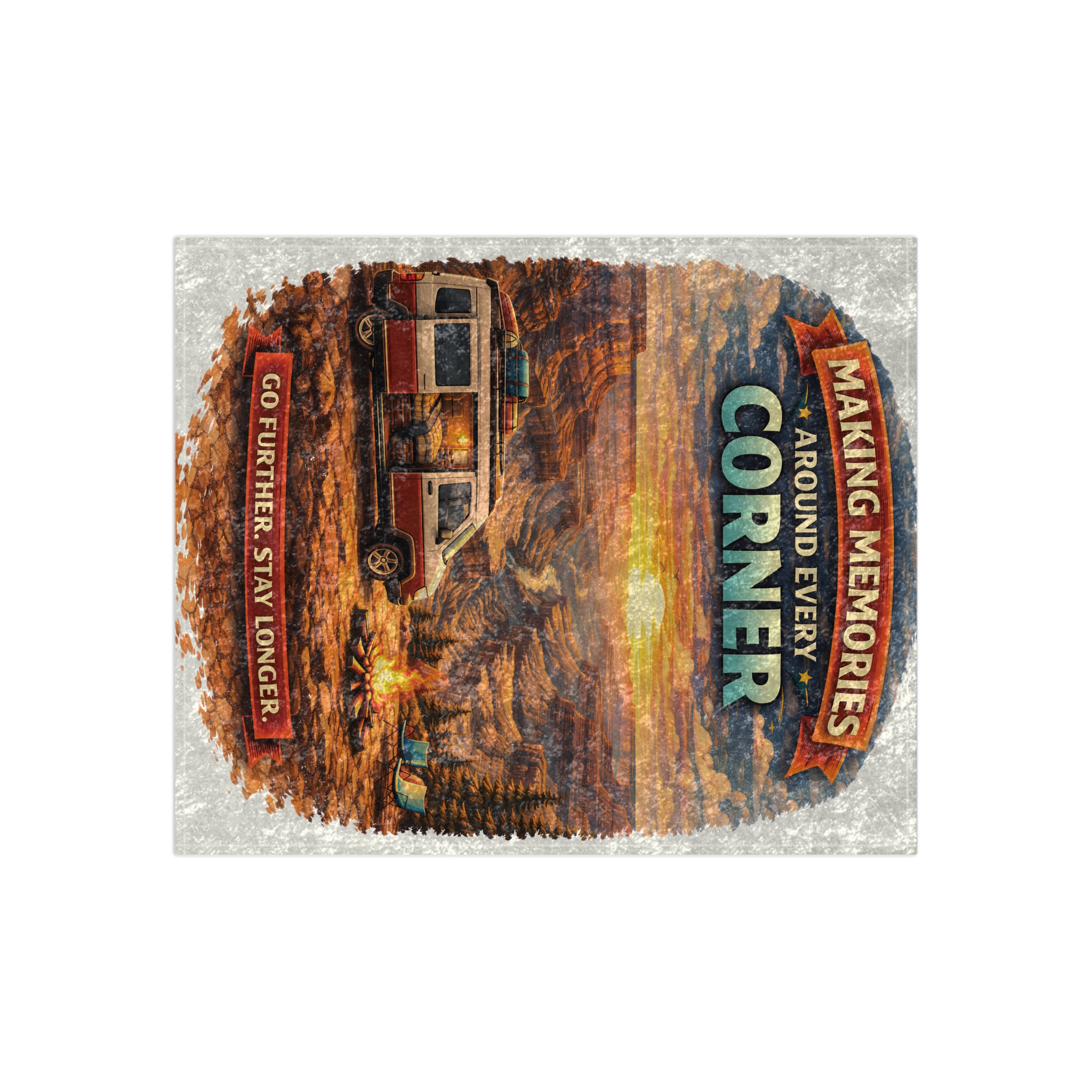 Crushed Velvet Blanket —”Making Memories Around Every Corner” Design Scenic-Line (Campervan)