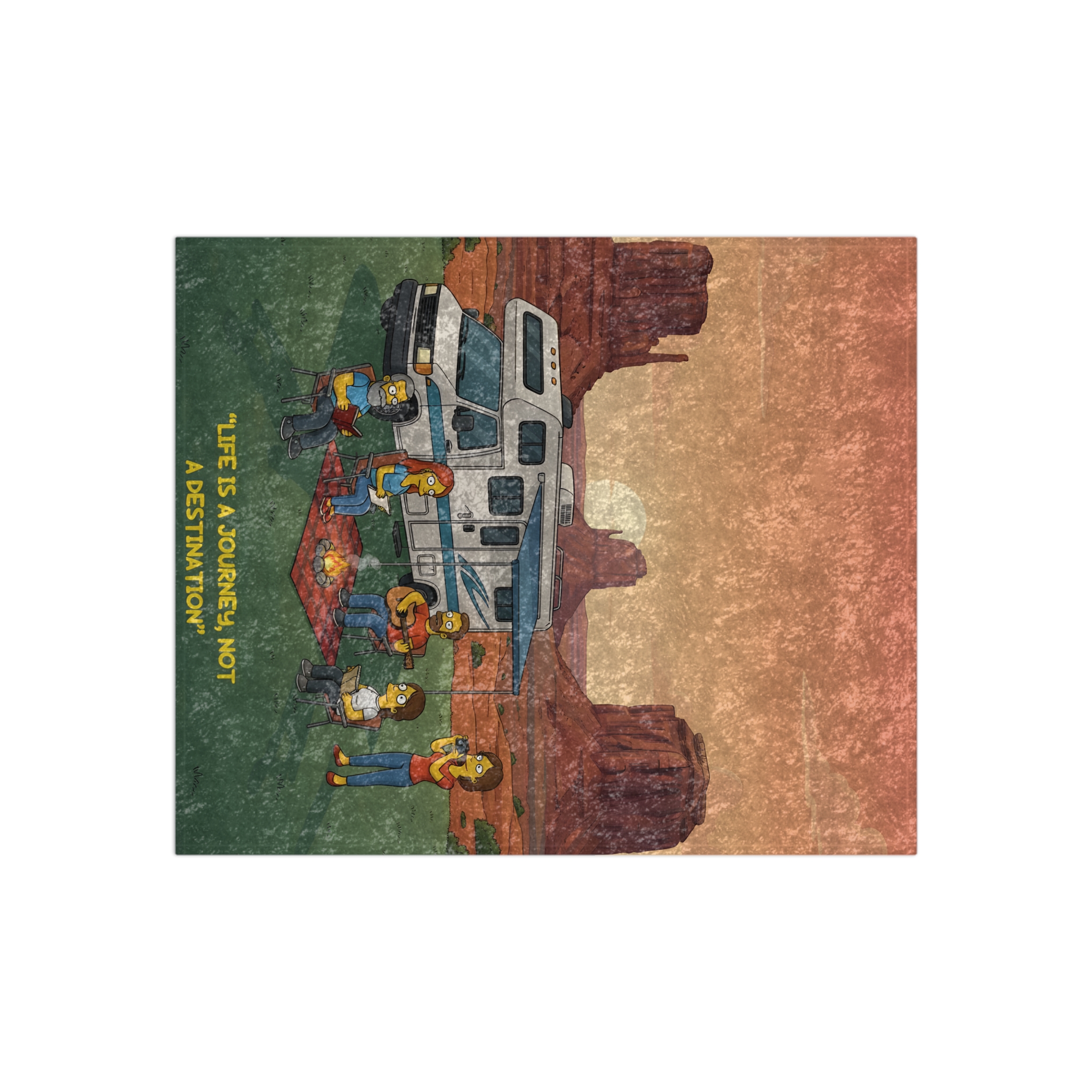 Crushed Velvet Blanket —”Life Is A Journey-Not A Destination” Design Sitcom-Line (Campervan)
