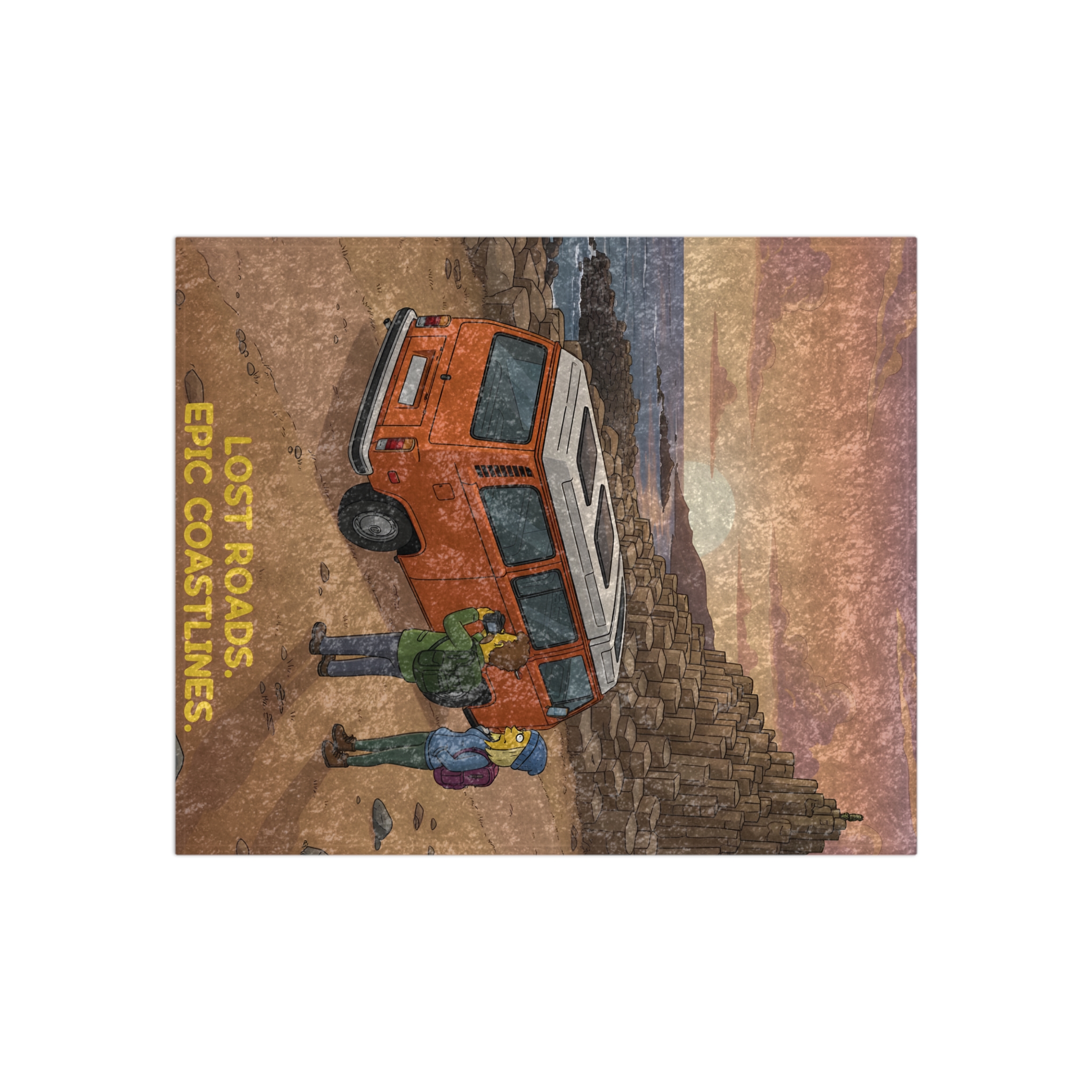Crushed Velvet Blanket —”Lost Roads Epic Coastlines” Design Sitcom-Line (Campervan)