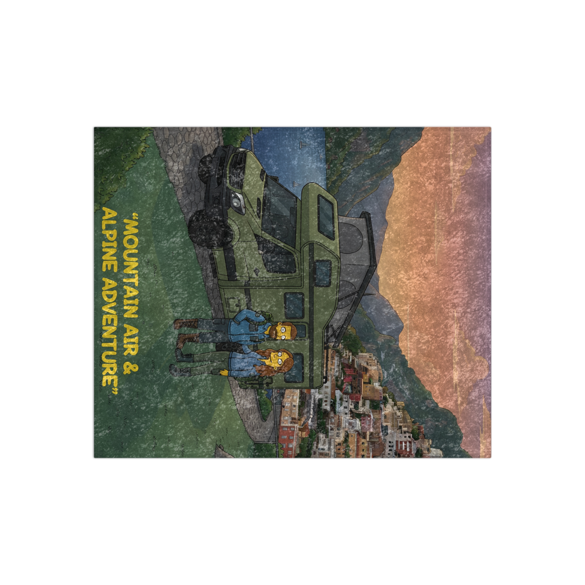 Crushed Velvet Blanket —”Mountain Air-Alpine Adventure” Design Sitcom-Line (Campervan)