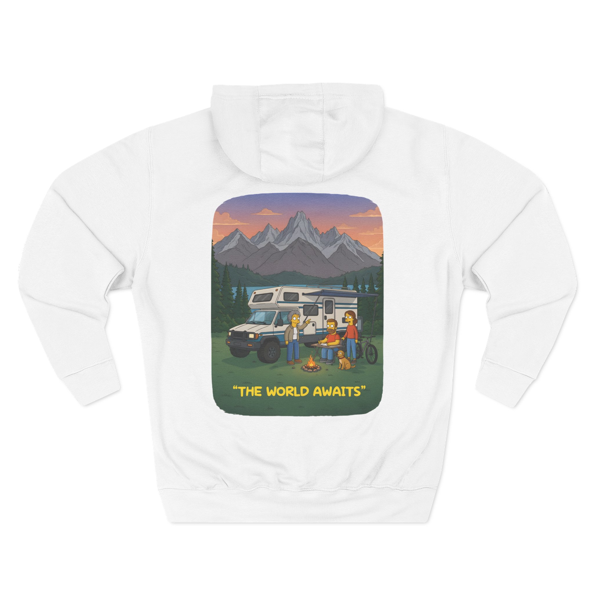 Three-Panel Fleece Hoodie – “The World Awaits” Design Sitcom-Line